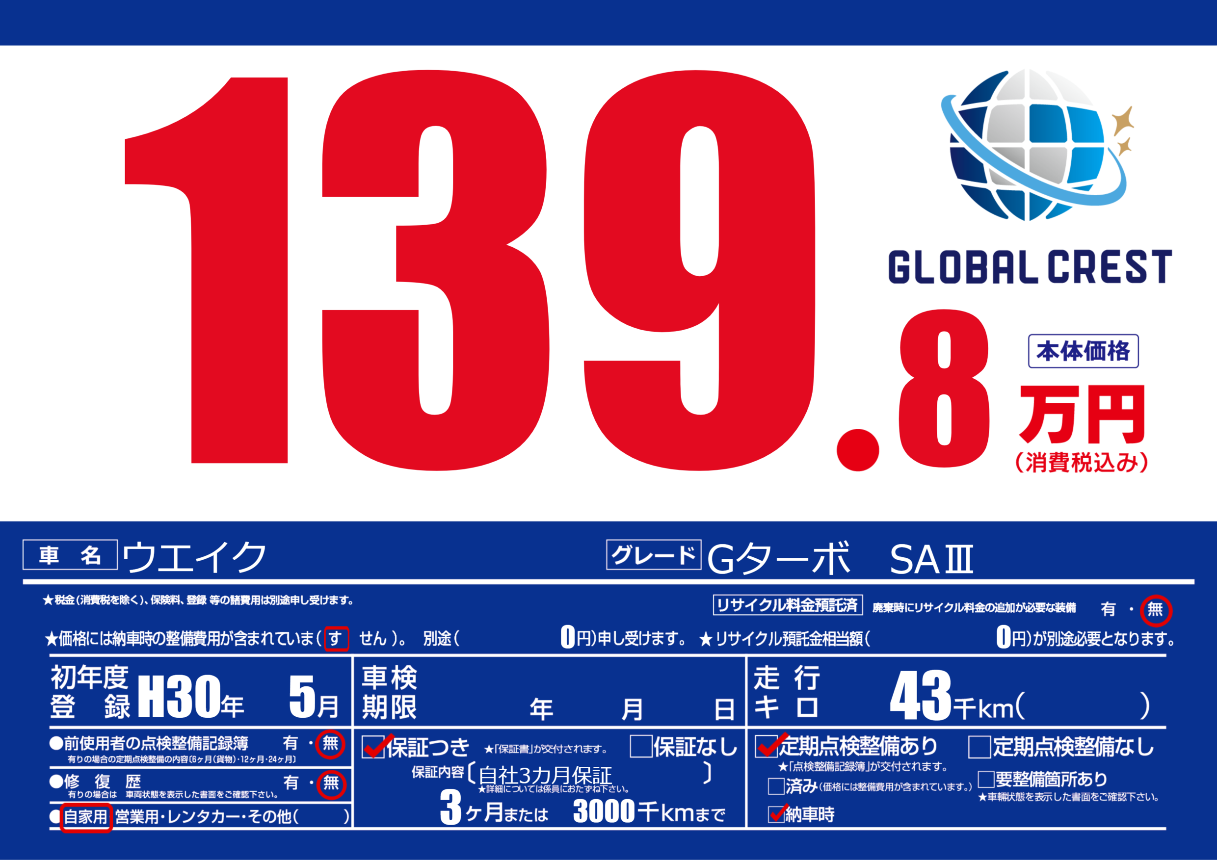 保証内容(自社3カ月保証) 3ヶ月または3000千km