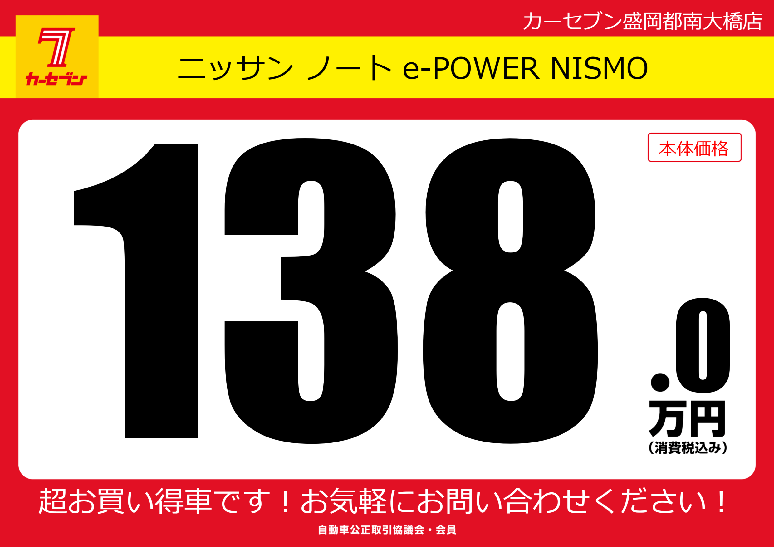 | 車名 | ニッサン ノート e-POWER NISMO | グレード ミッション 排気量 |