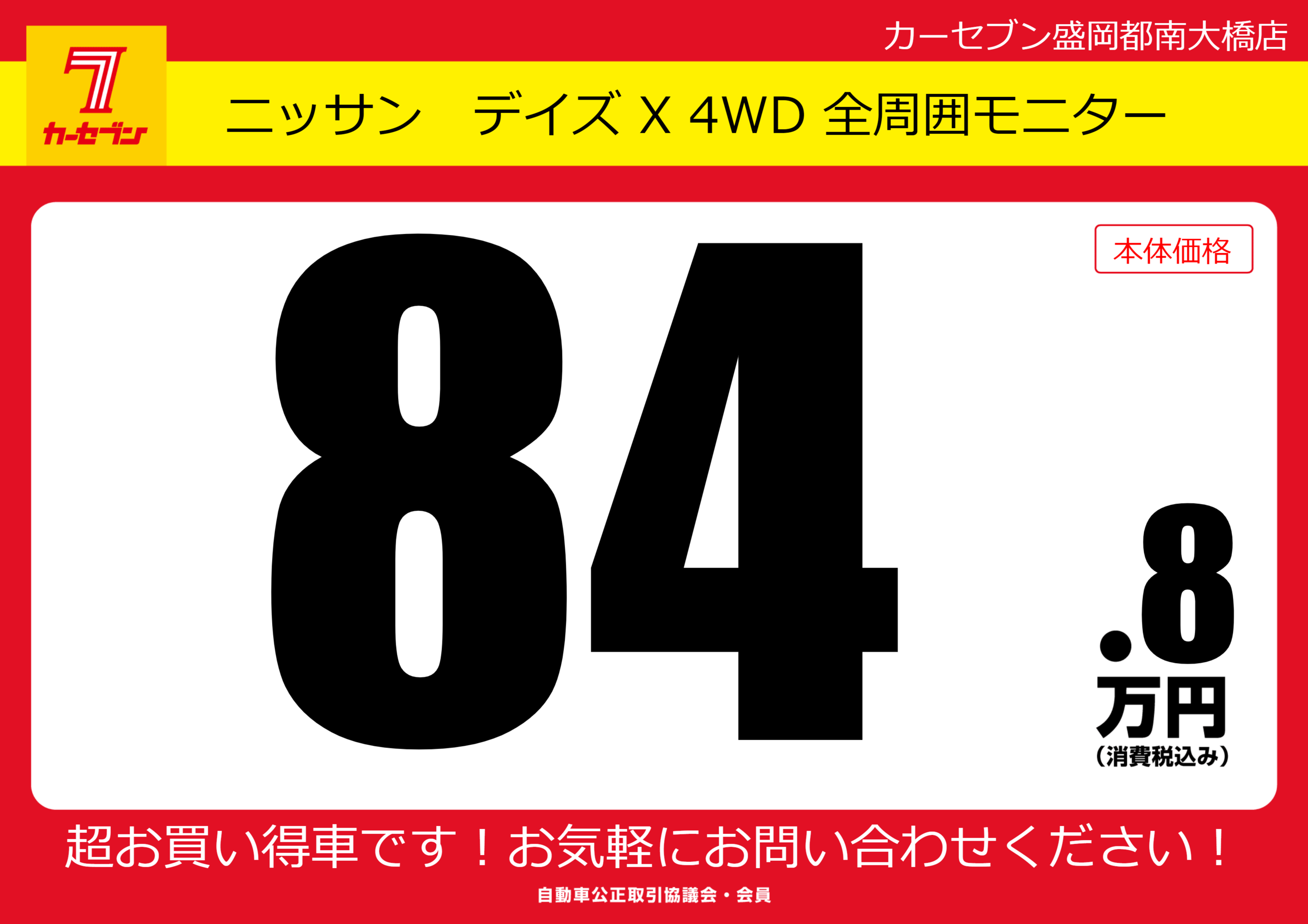 | 車名 | ニッサン デイズ X 4WD 全周囲モニター | グレード ミッション 排気量 |