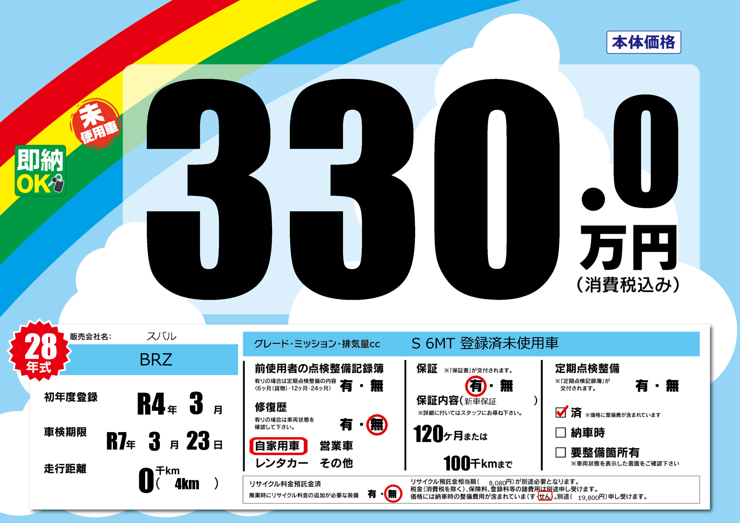 | 定期点検整備 | 定期点検整備済み | ||
