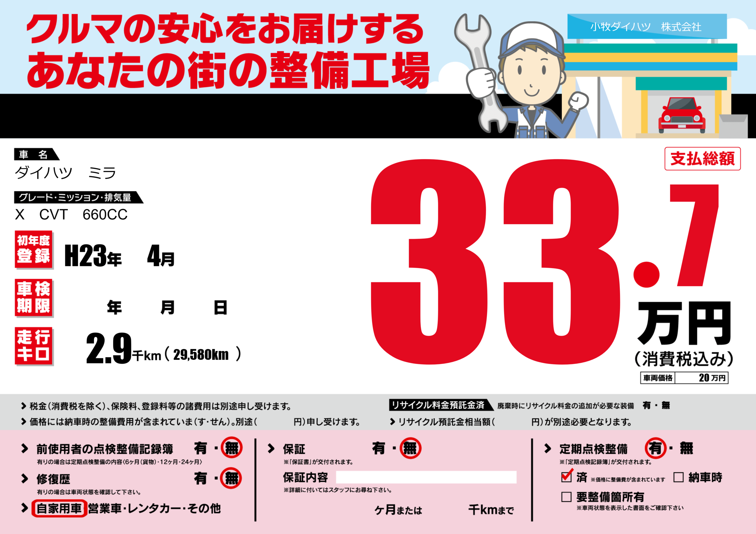 | 定期点検整備 | 定期点検整備あり 定期点検整備済み | ||