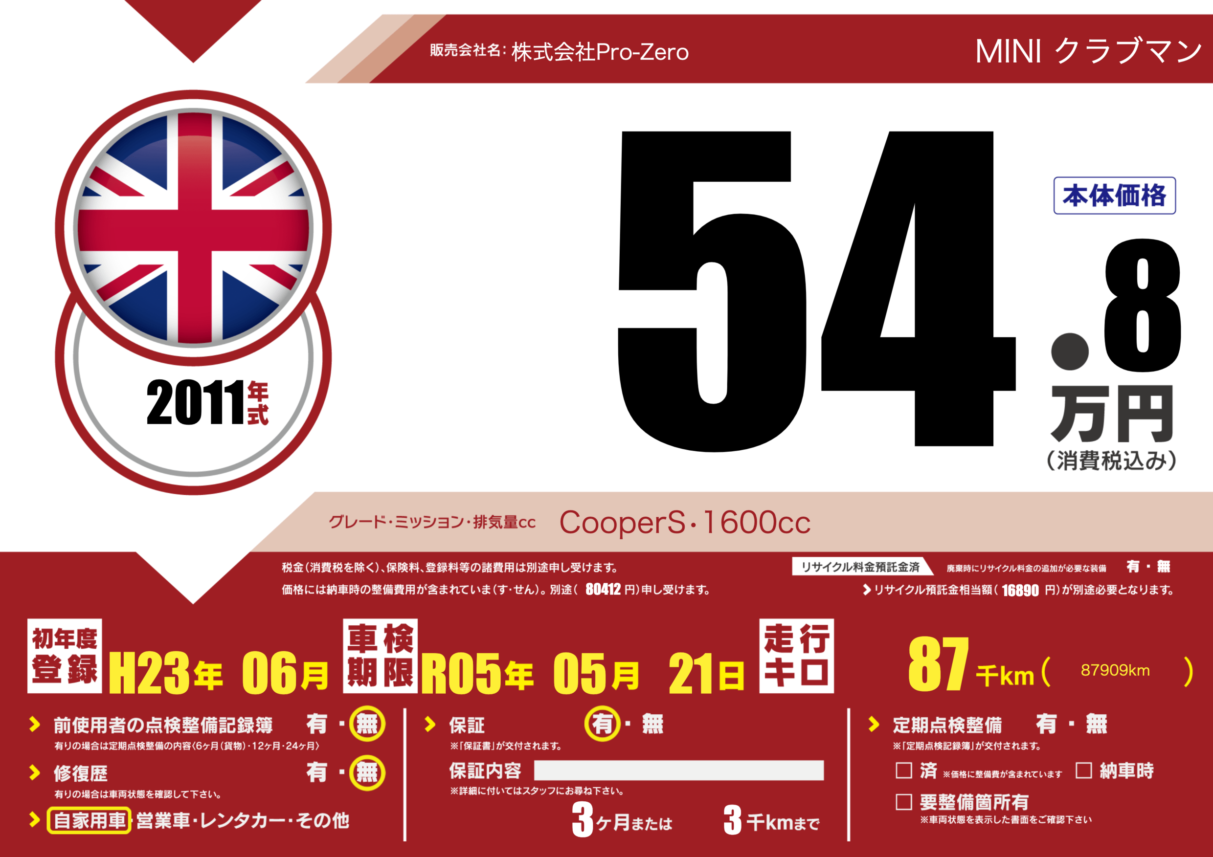 | 車名 | MINI クラブマン | グレード ミッション 排気量 |