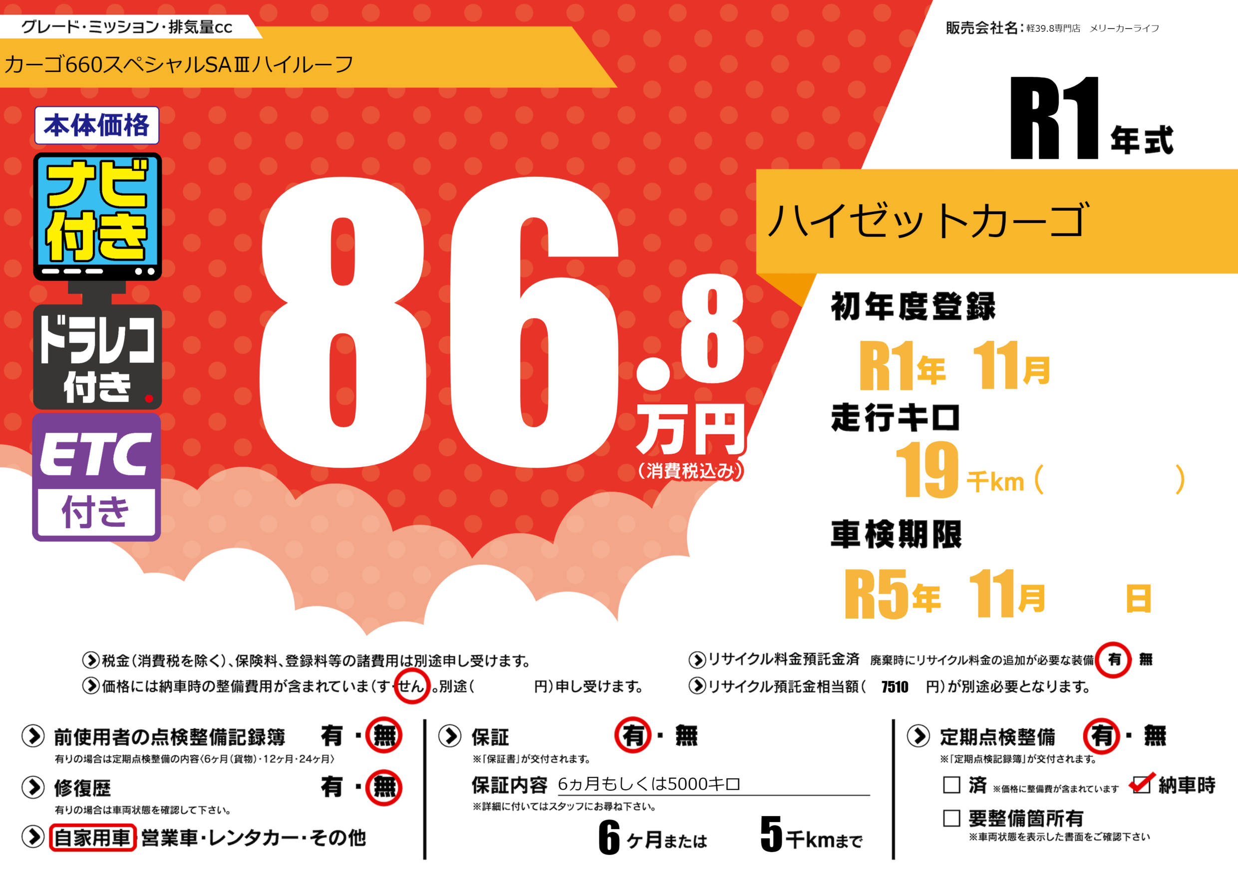 なし | 車検制限 | R5年11月---月 |
