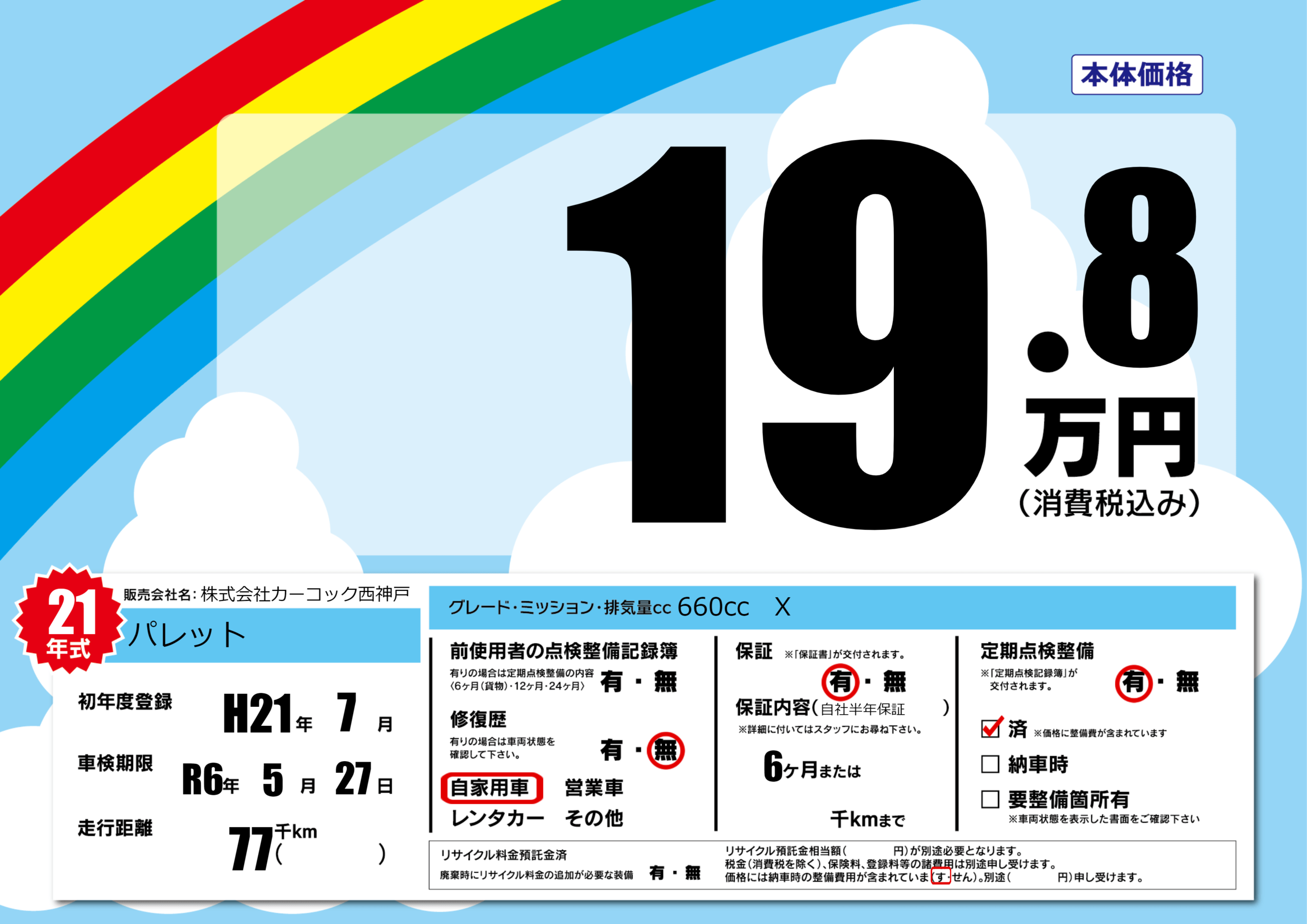 | 定期点検整備 | 定期点検整備あり 定期点検整備済み | ||