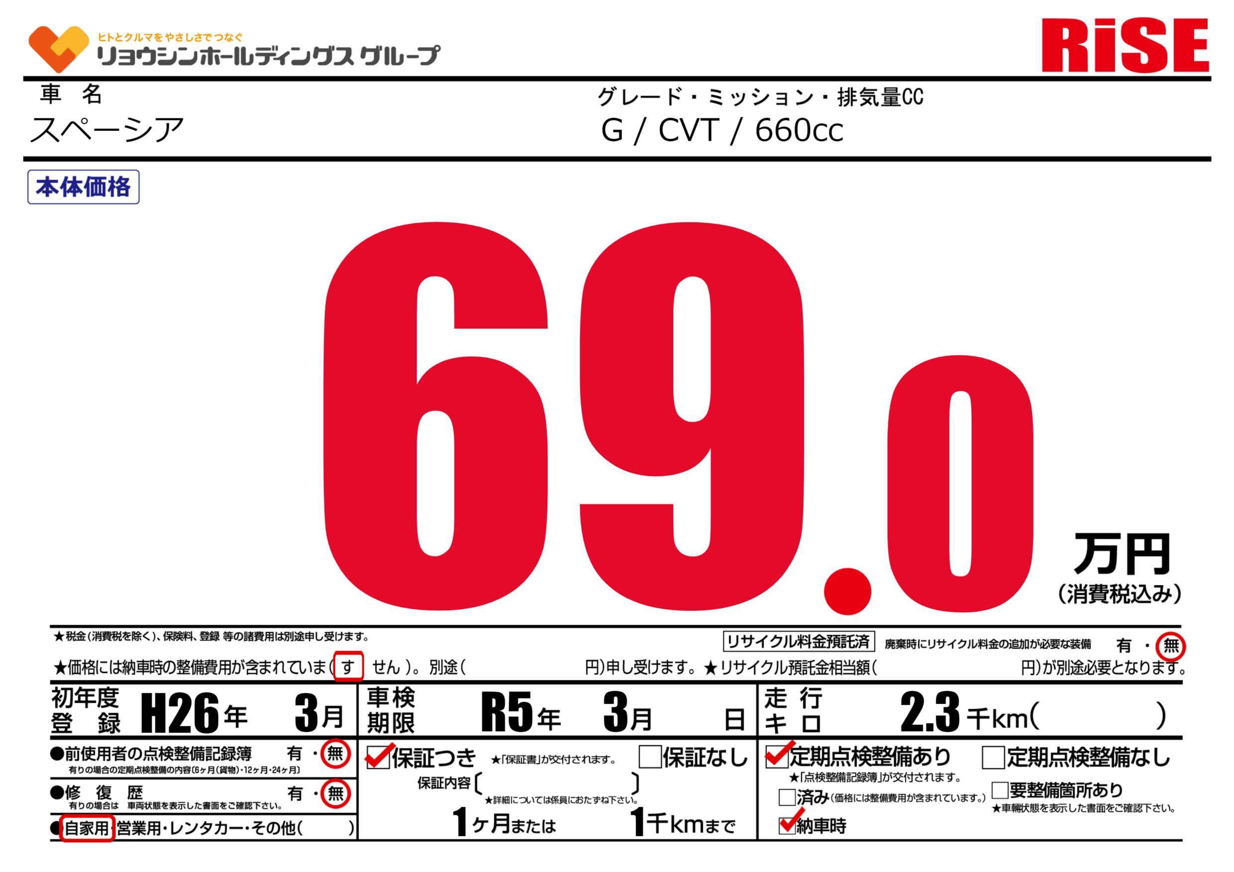 | 定期点検整備 | 定期点検整備あり 納車時あり | ||