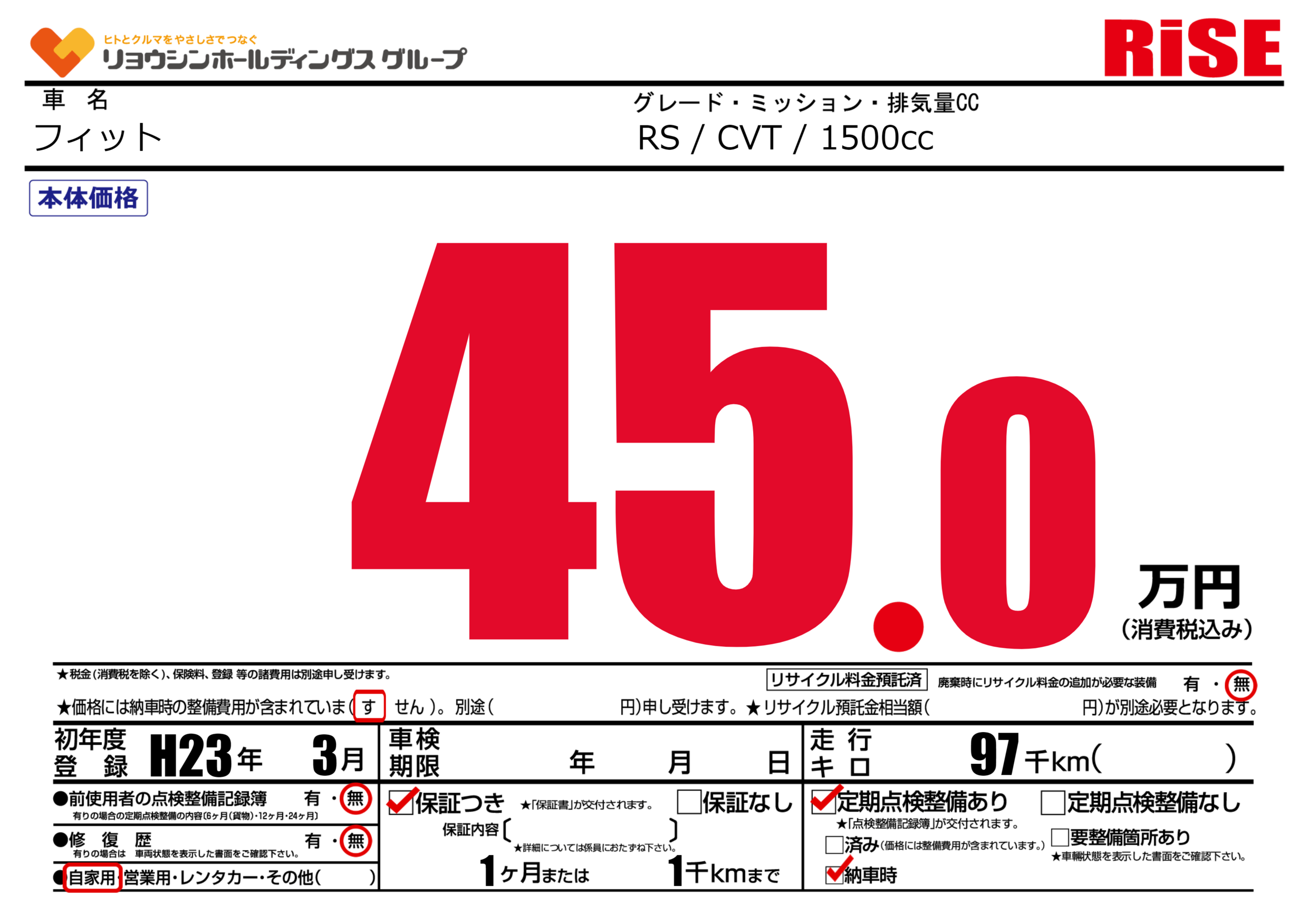 | 定期点検整備 | 定期点検整備あり 納車時あり | ||