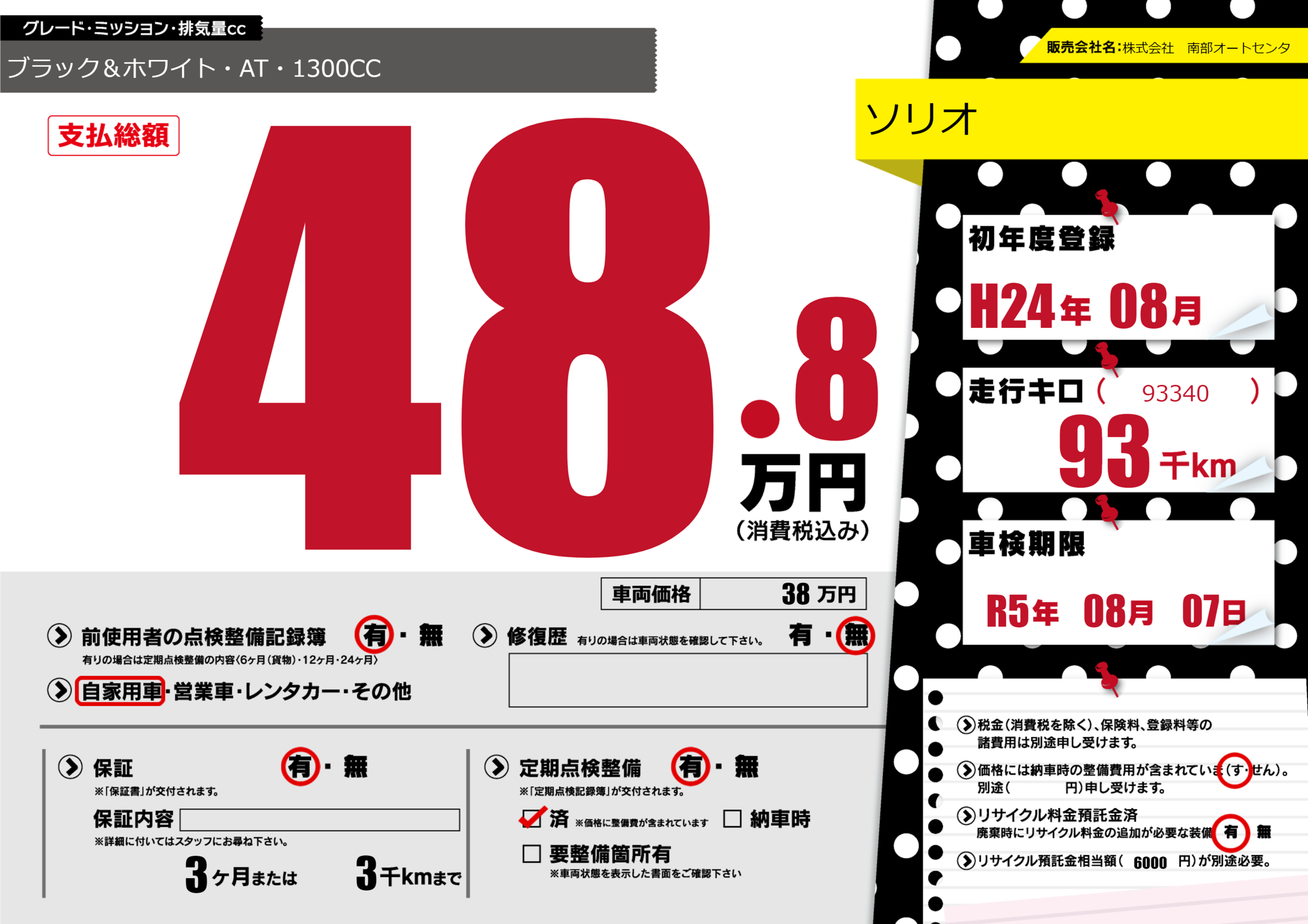 | 定期点検整備 | 定期点検整備あり 定期点検整備済み | ||
