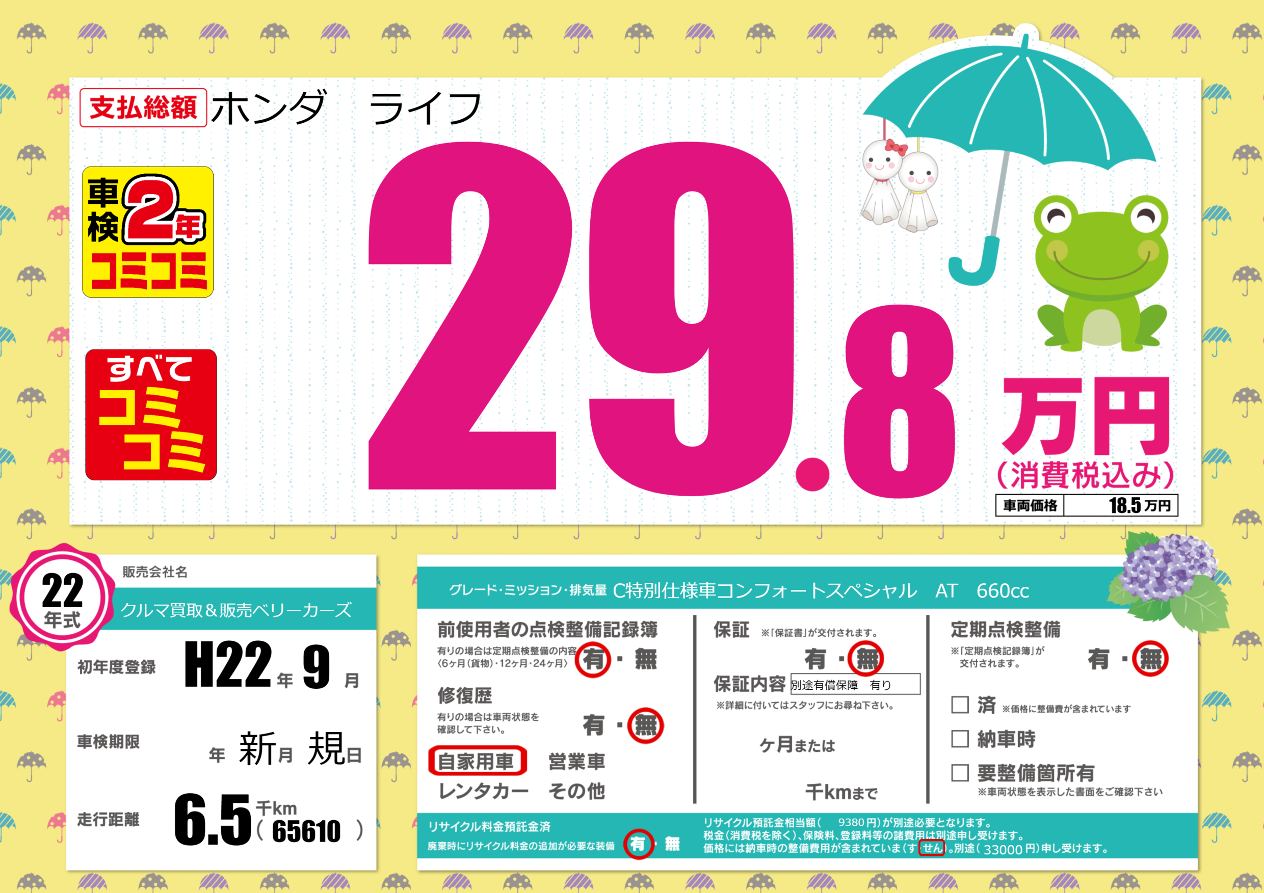 | 車名 | ホンダ ライフ | グレード ミッション 排気量 |