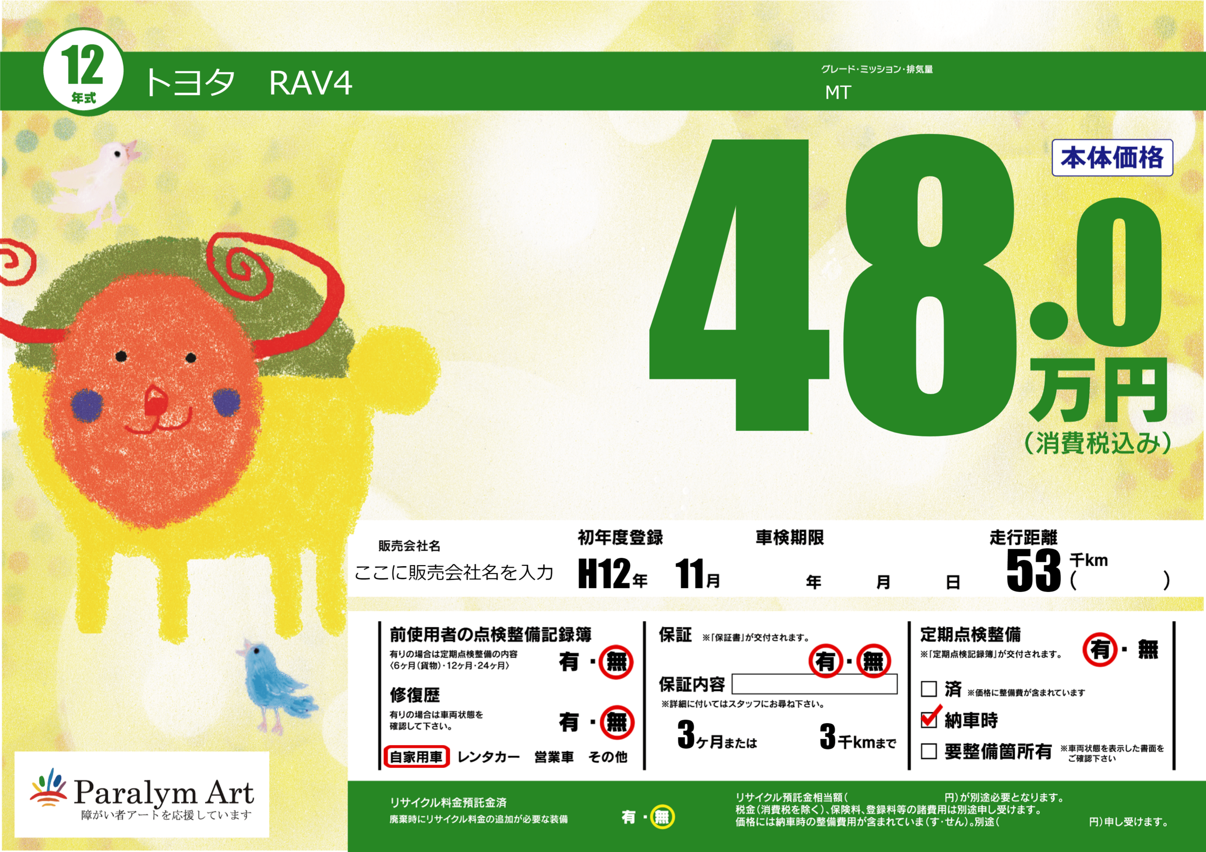 | 走行キロ | 5.3万km | 初年度登録 | H12年11月 |