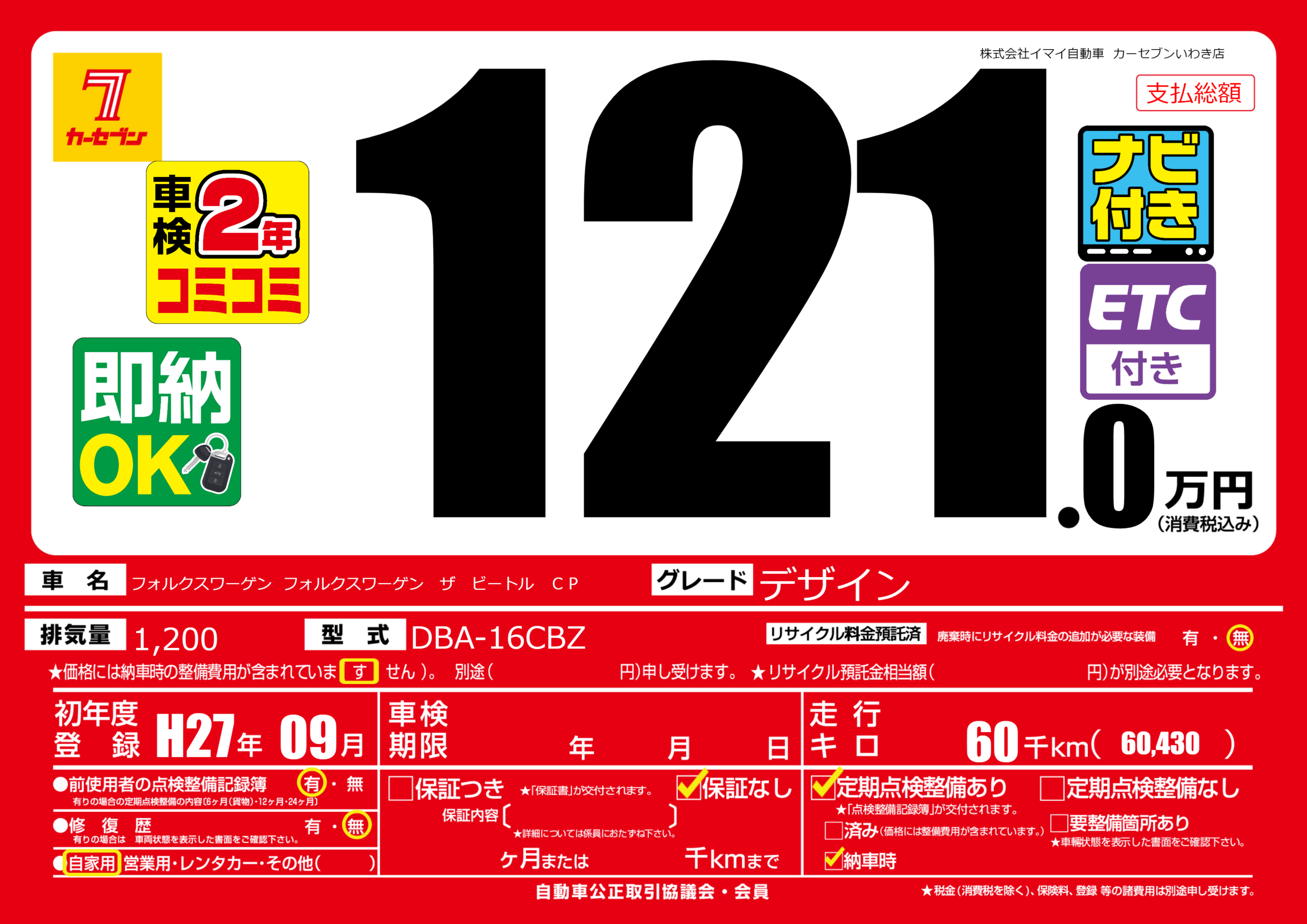 フォルクスワーゲン  フォルクスワーゲン ザ ビートル CP