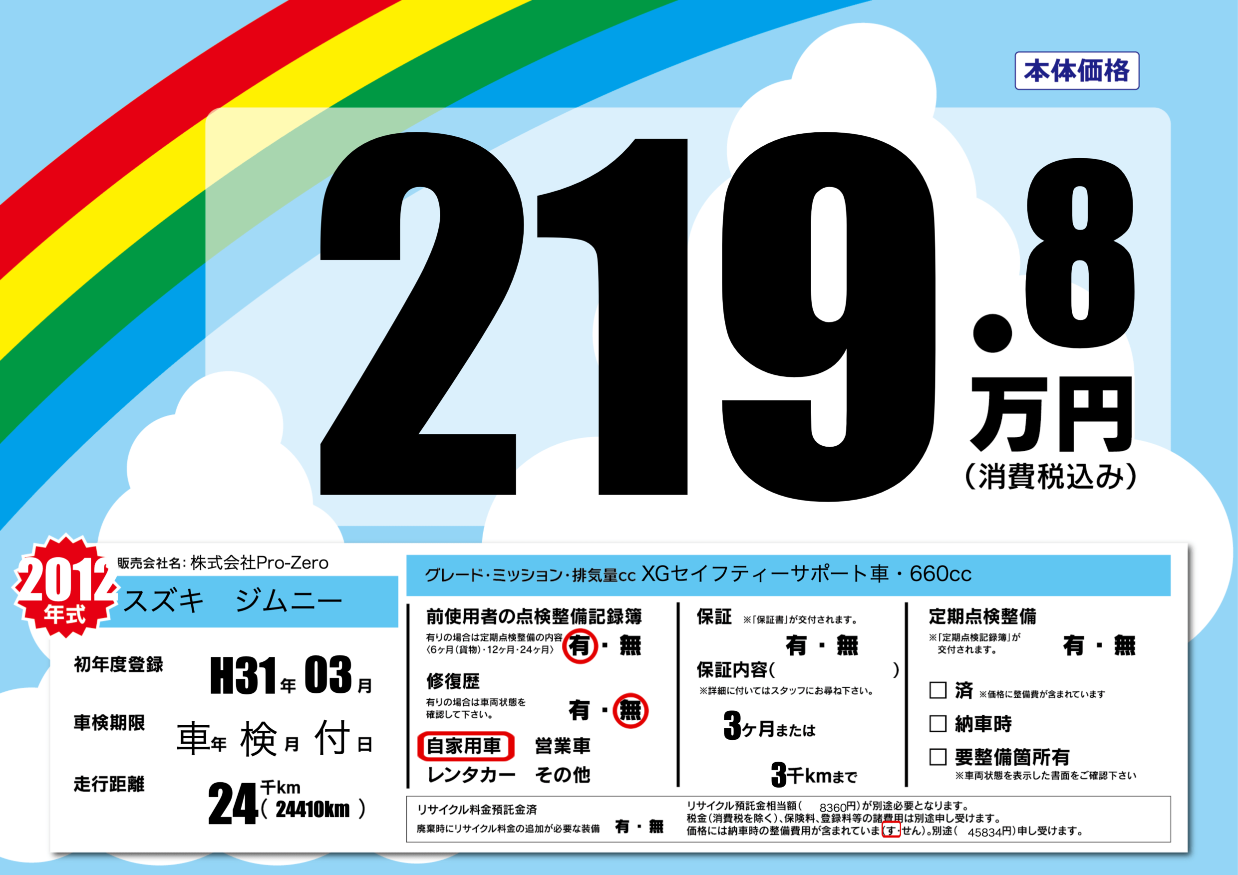 | 走行キロ | 2.4万km | 初年度登録 | H31年03月 |