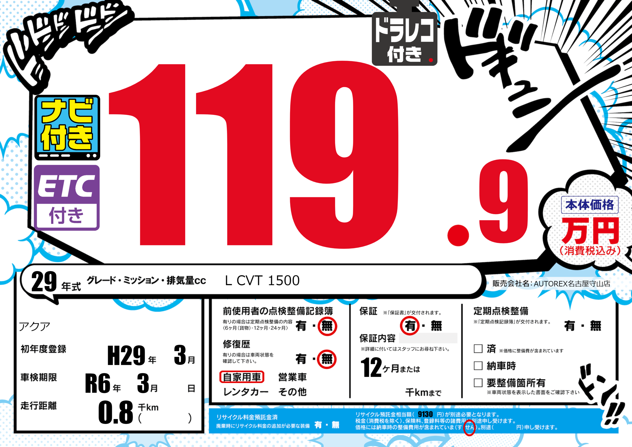 | 走行キロ | - | 初年度登録 | H29年3月 |