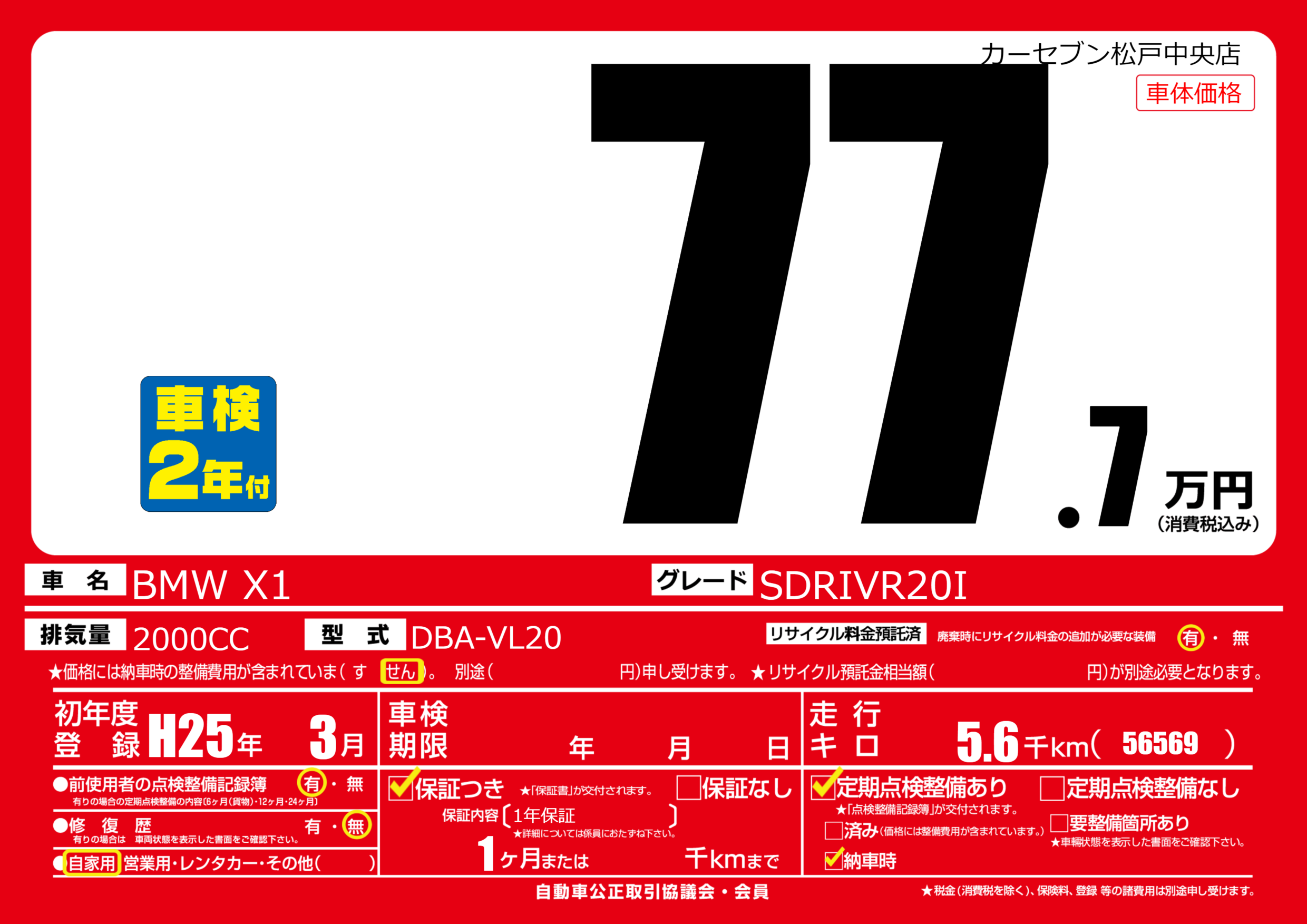 | 車名 | BMW X1 | グレード ミッション 排気量 |