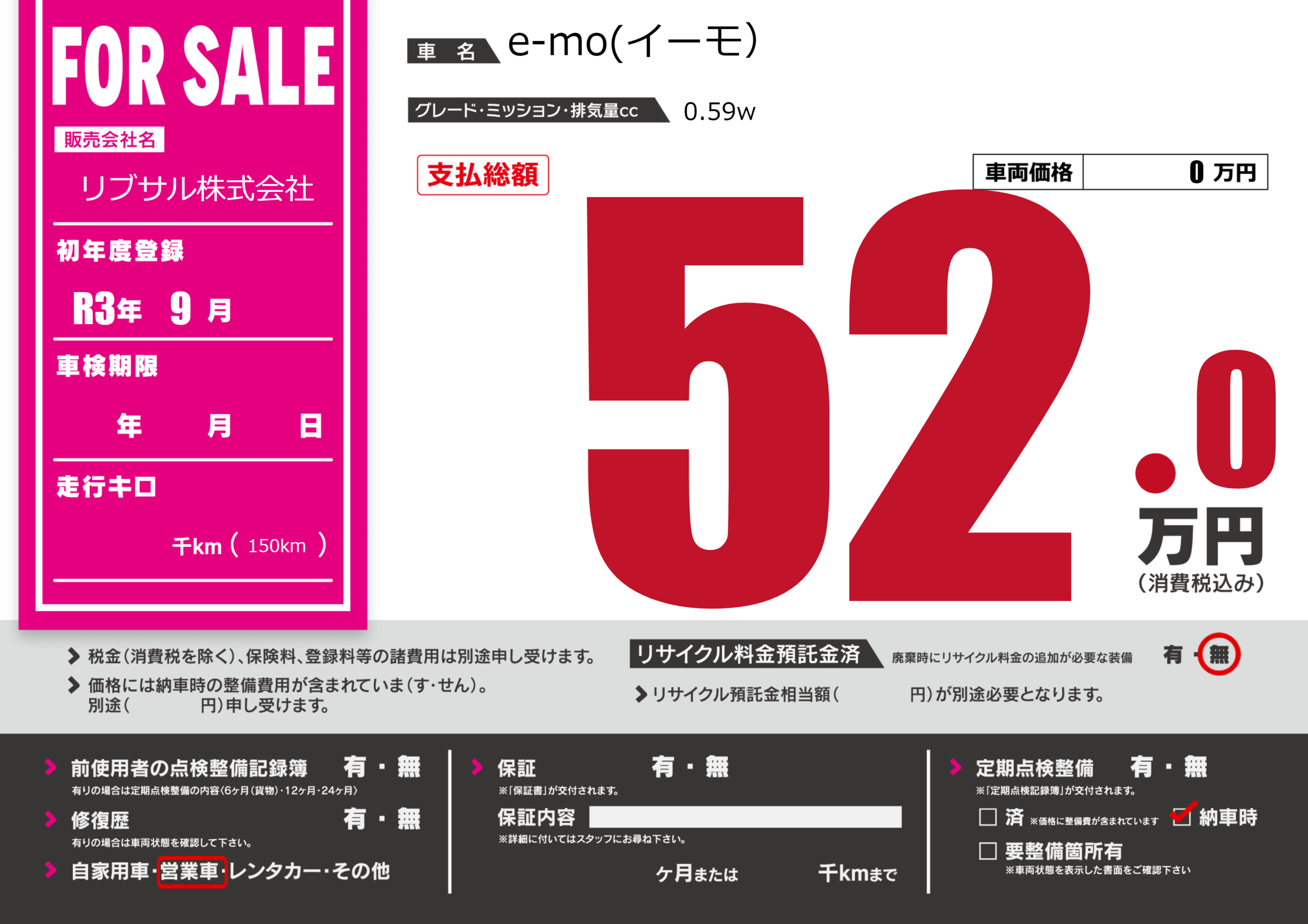 | メーカー | - | 種別 | 営業用 |
