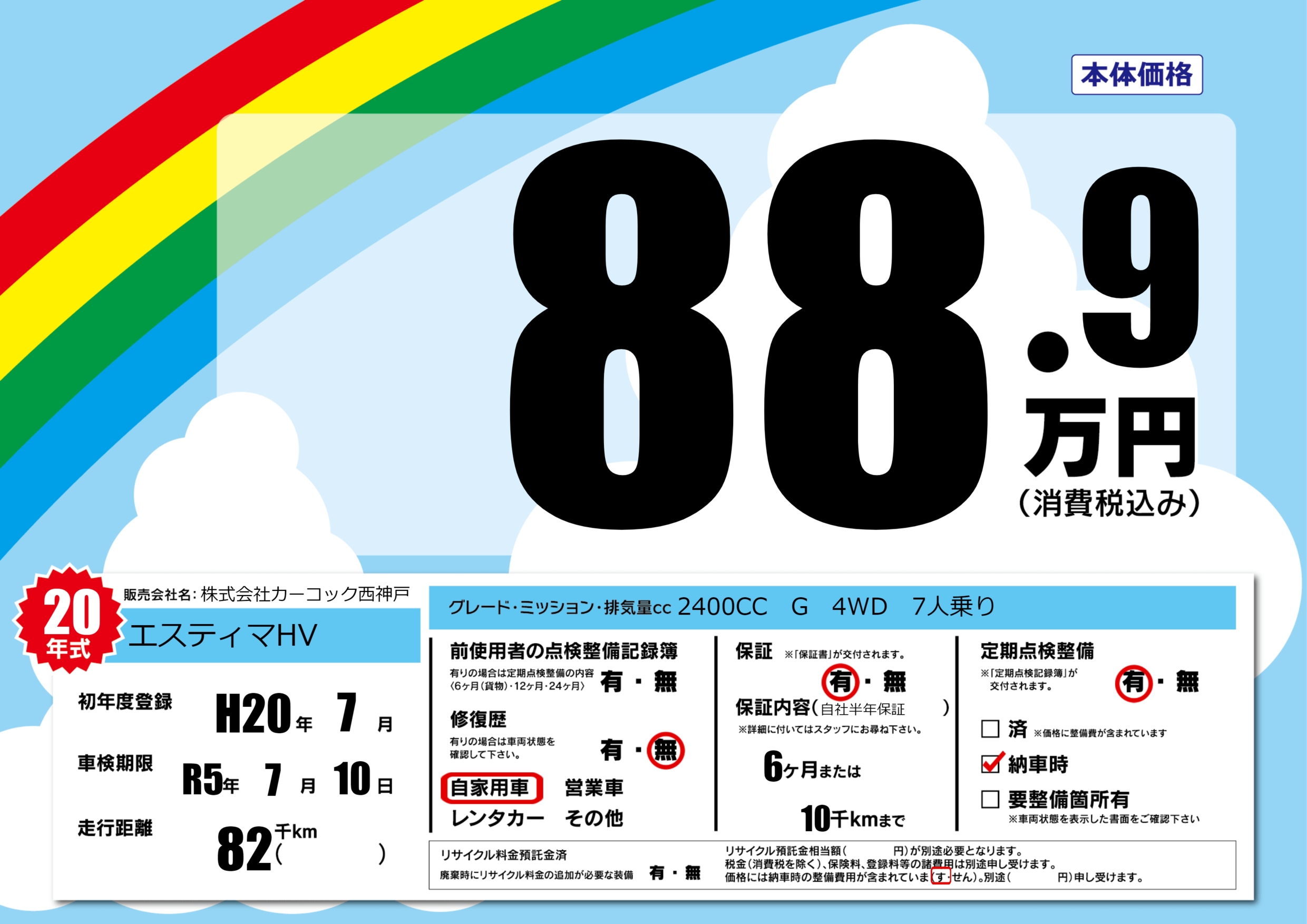 | 走行キロ | 8.2万km | 初年度登録 | H20年7月 |