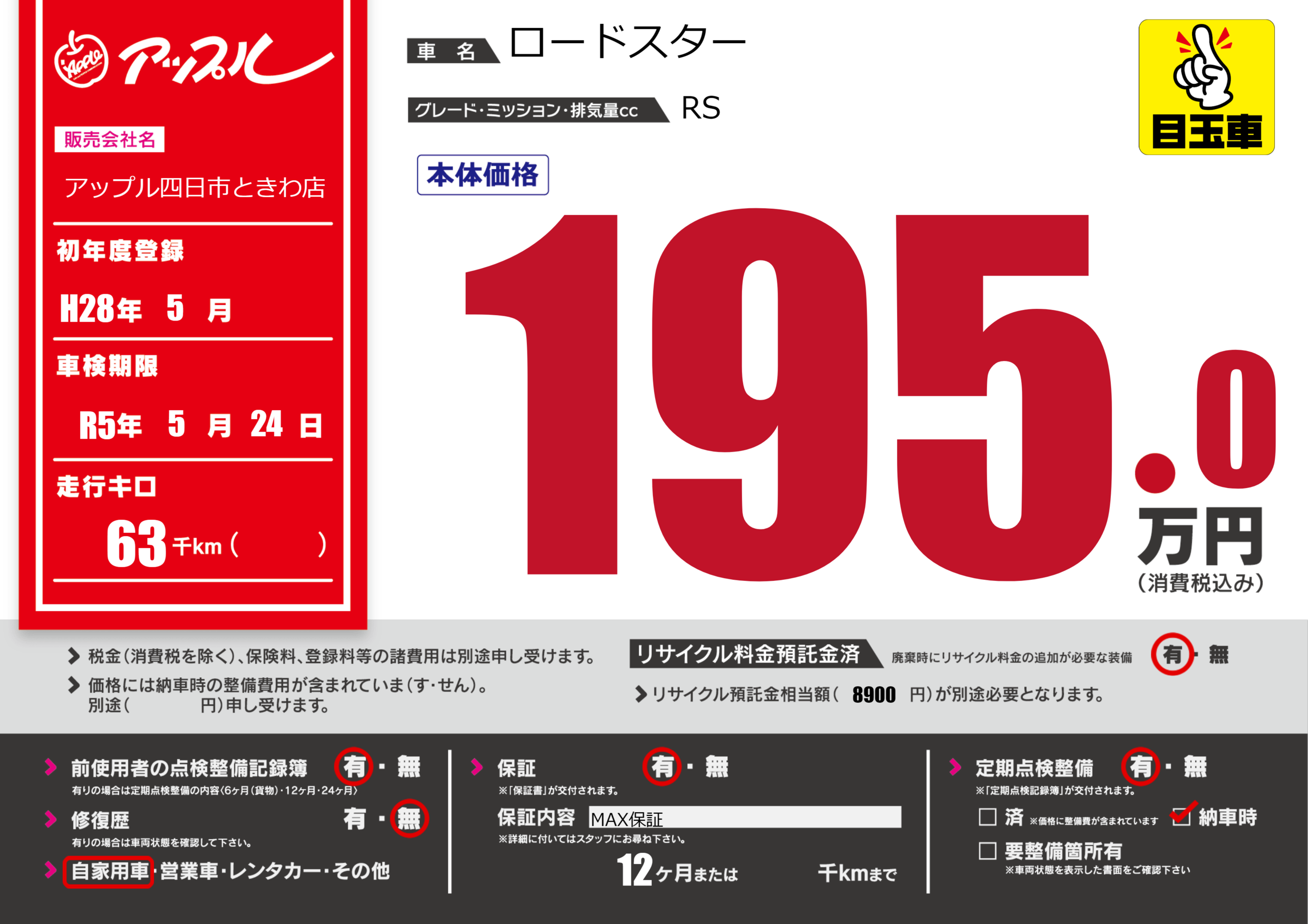 なし | 車検制限 | R5年5月24月 |