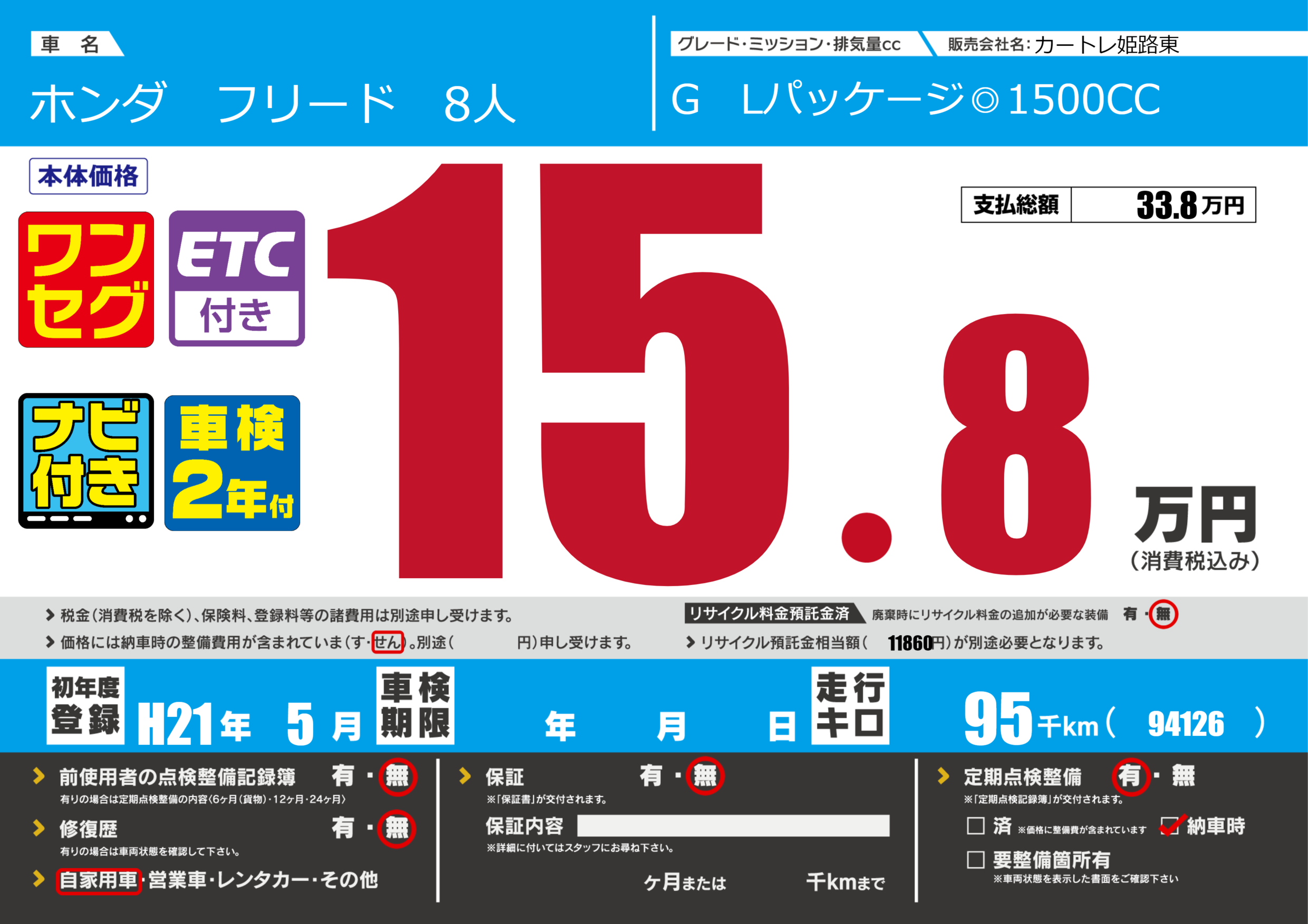 | 定期点検整備 | 定期点検整備あり 納車時あり | ||