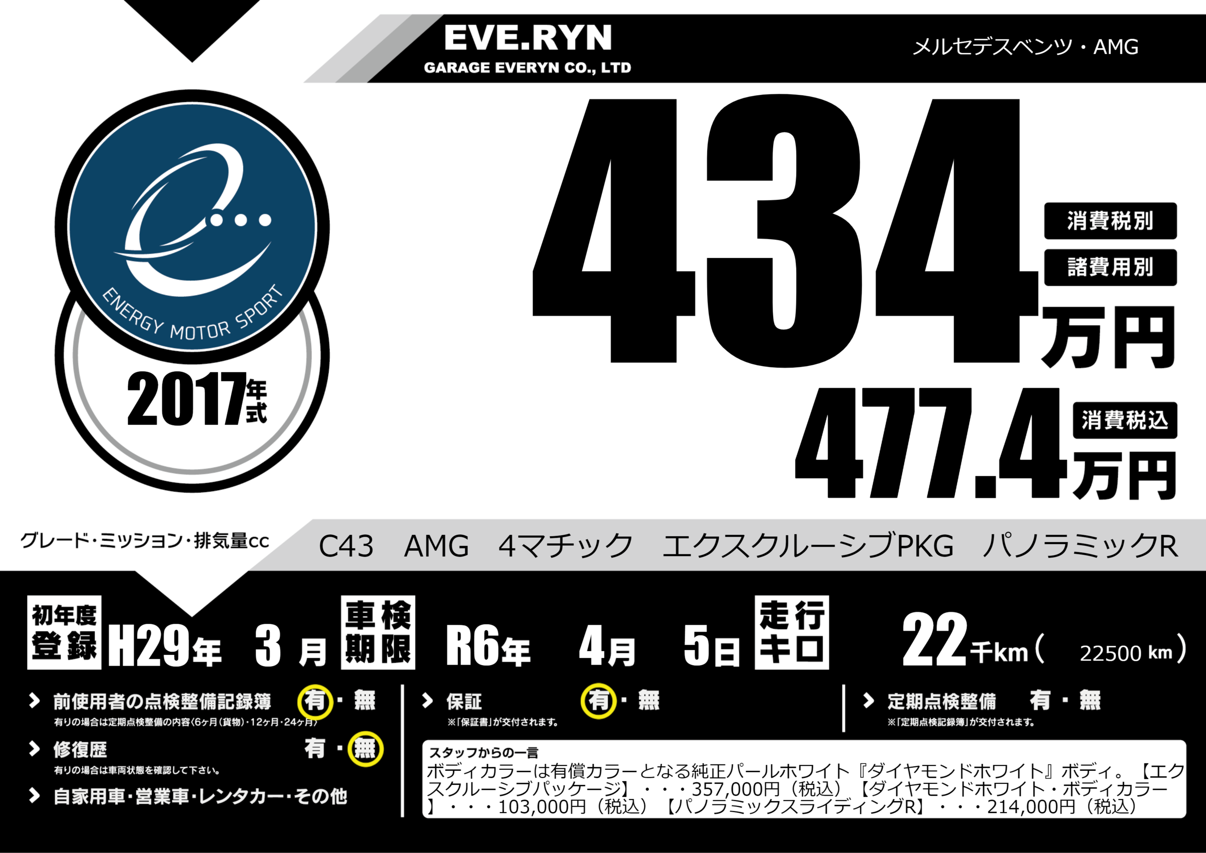 C43 AMG 4マチック エクスクルーシブPKG パノラミックR |