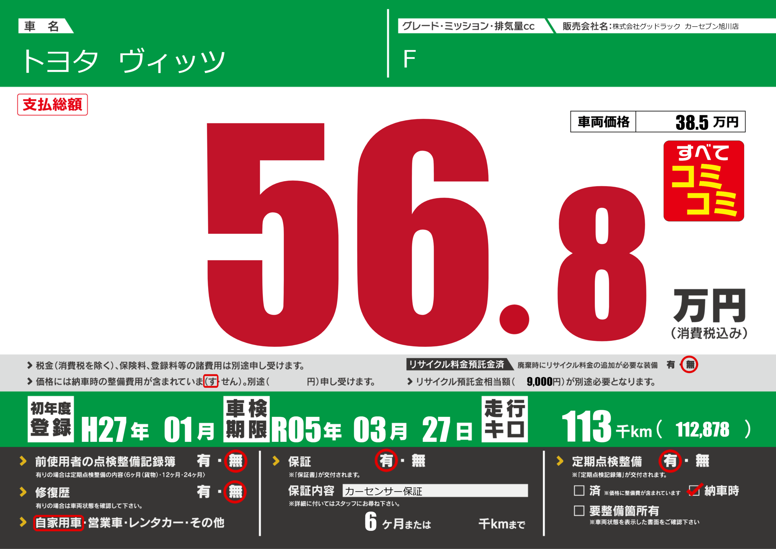 あり | 車検制限 | R05年03月27月 |