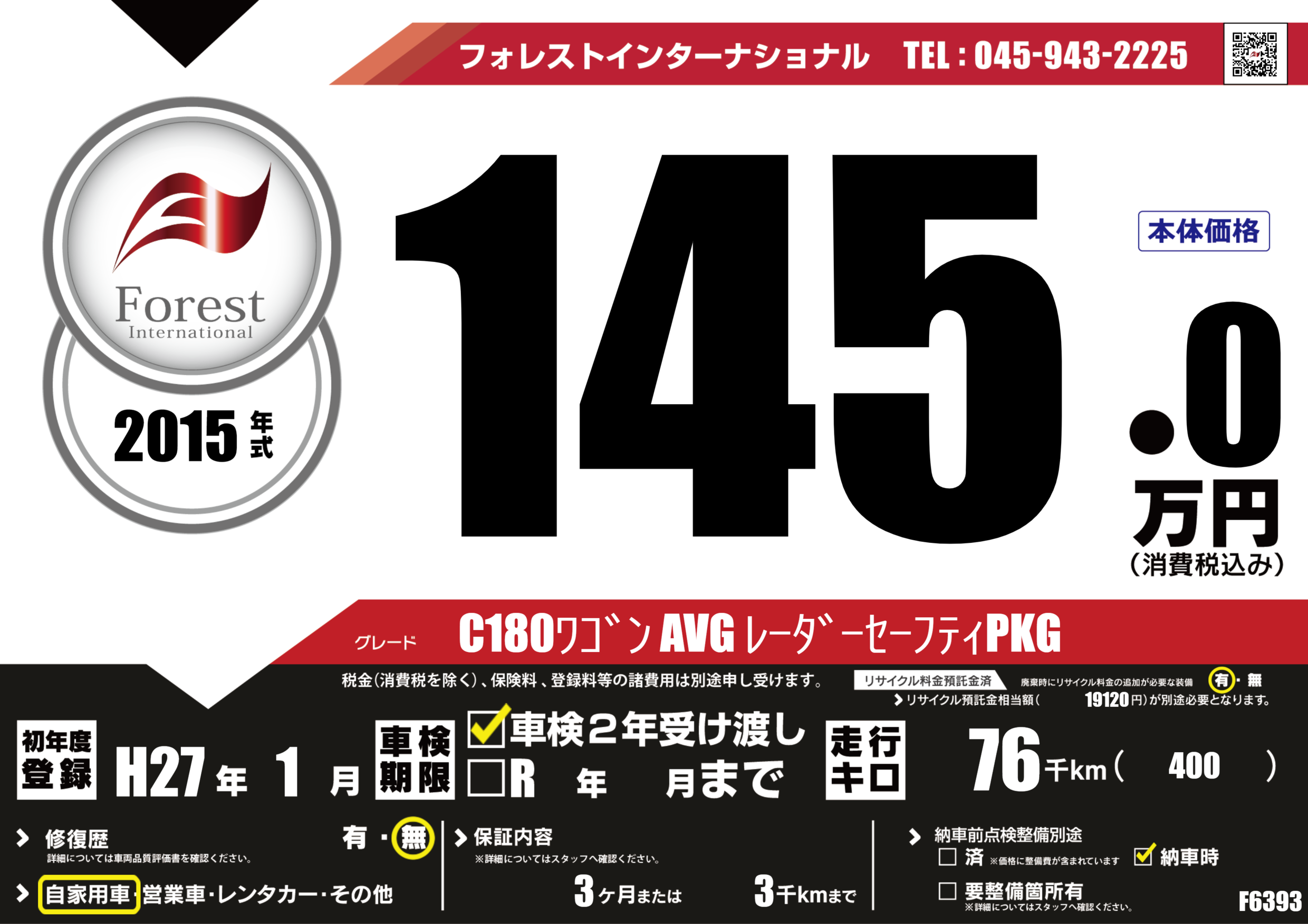 | 走行キロ | 7.6万km | 初年度登録 | H27年1月 |