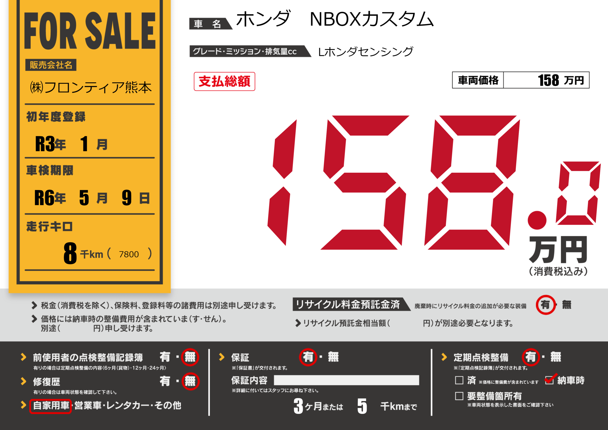 保証付き 保証内容(---) 3ヶ月または(5)千kmまで |