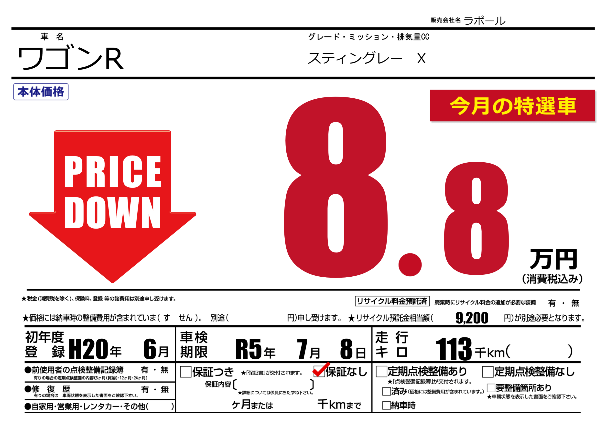 なし | 車検制限 | R5年7月8月 |