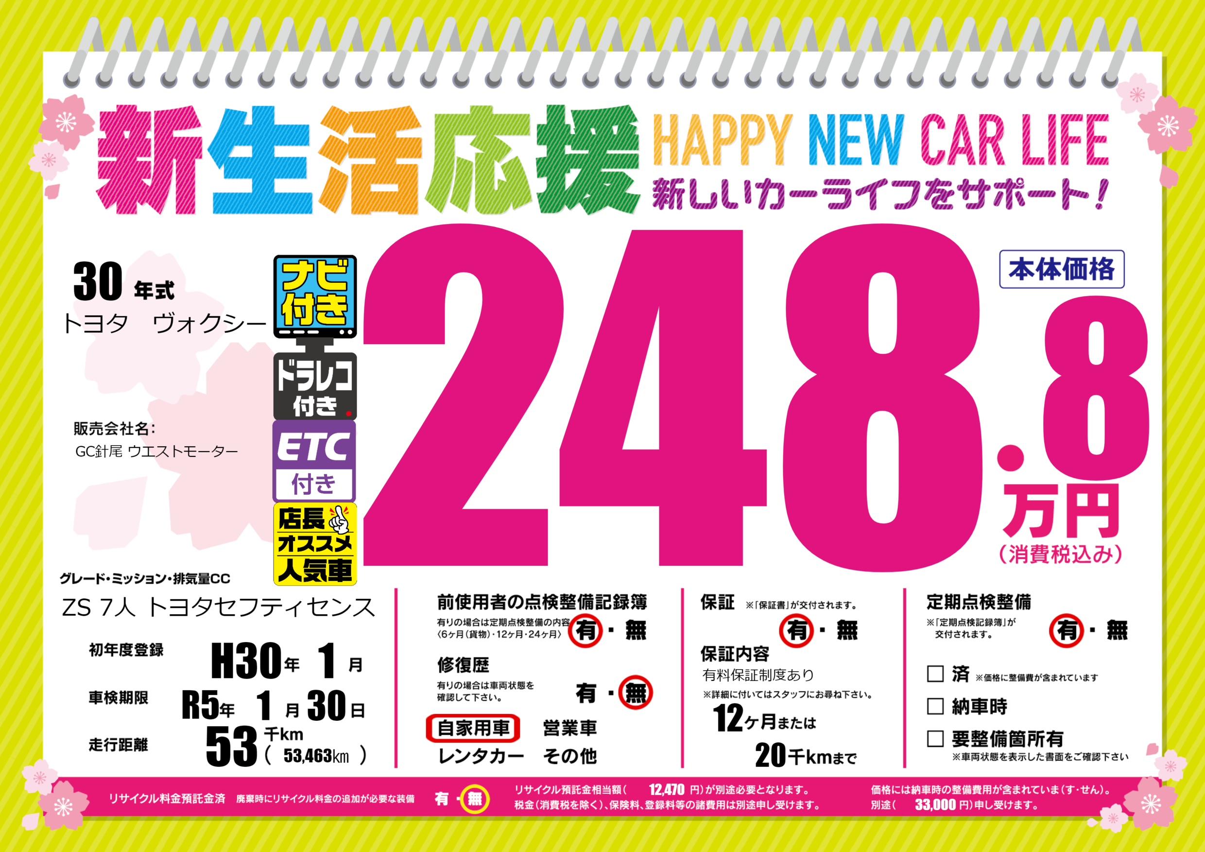 | 走行キロ | 5.3万km | 初年度登録 | H30年1月 |