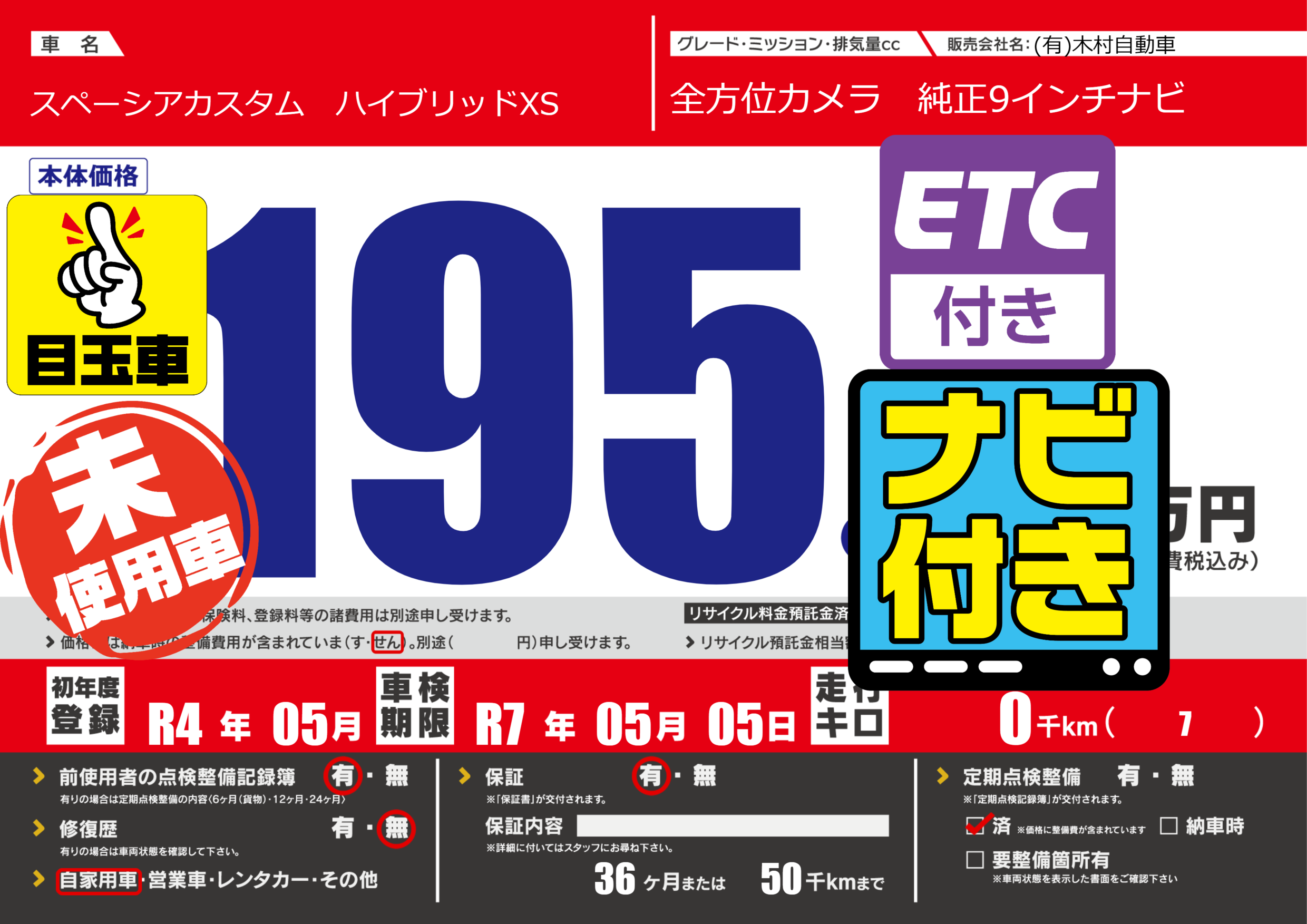 なし | 車検制限 | R7年05月05月 |