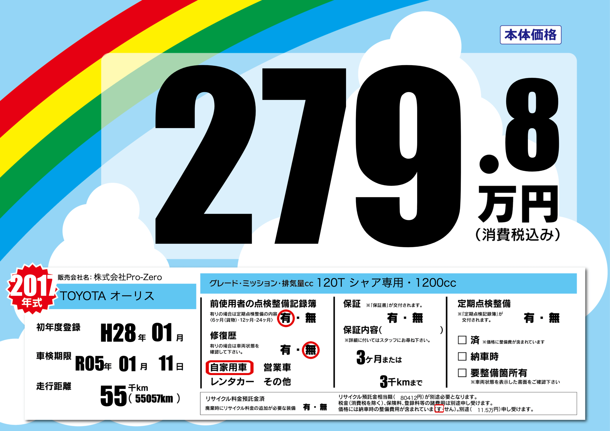| 車検制限 | R05年 01月 11日 | ||
