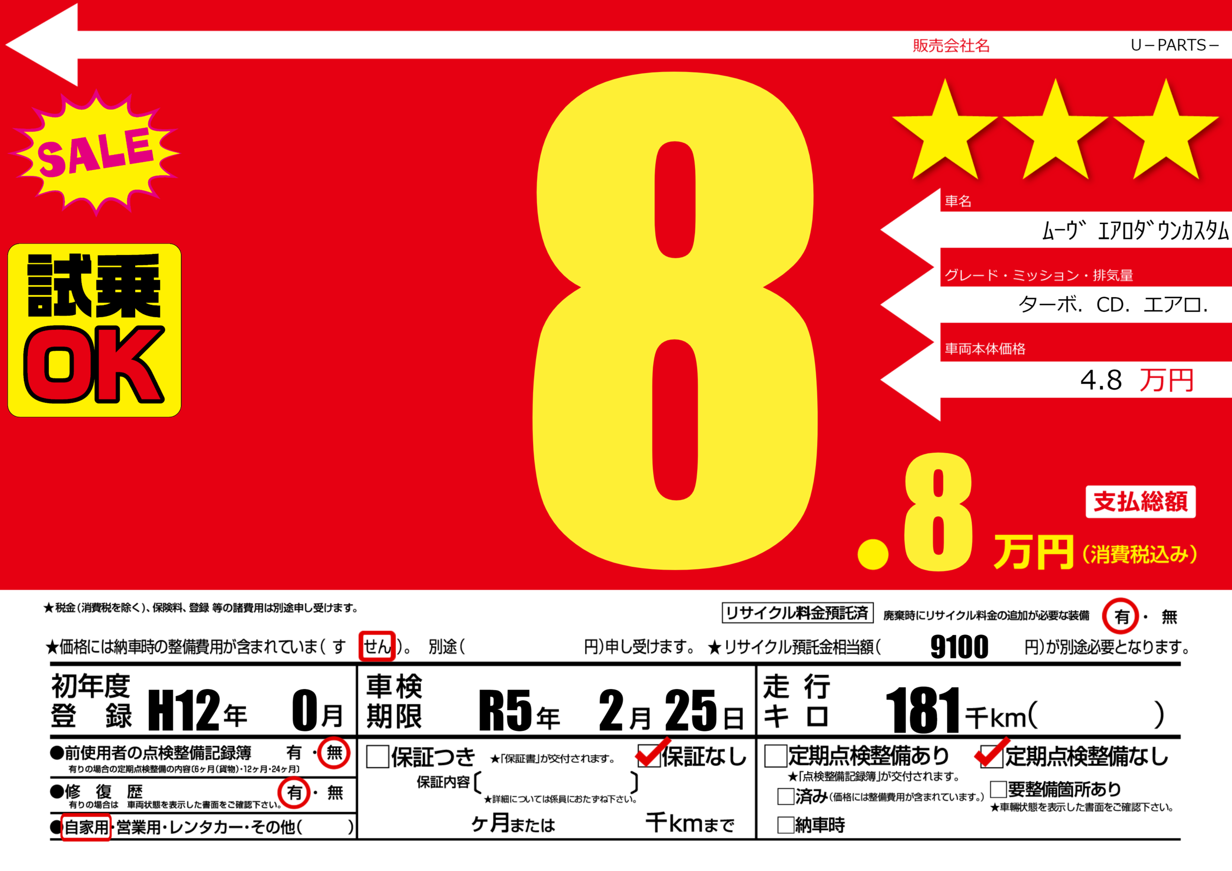 | 車検制限 | R5年 2月 25日 | ||