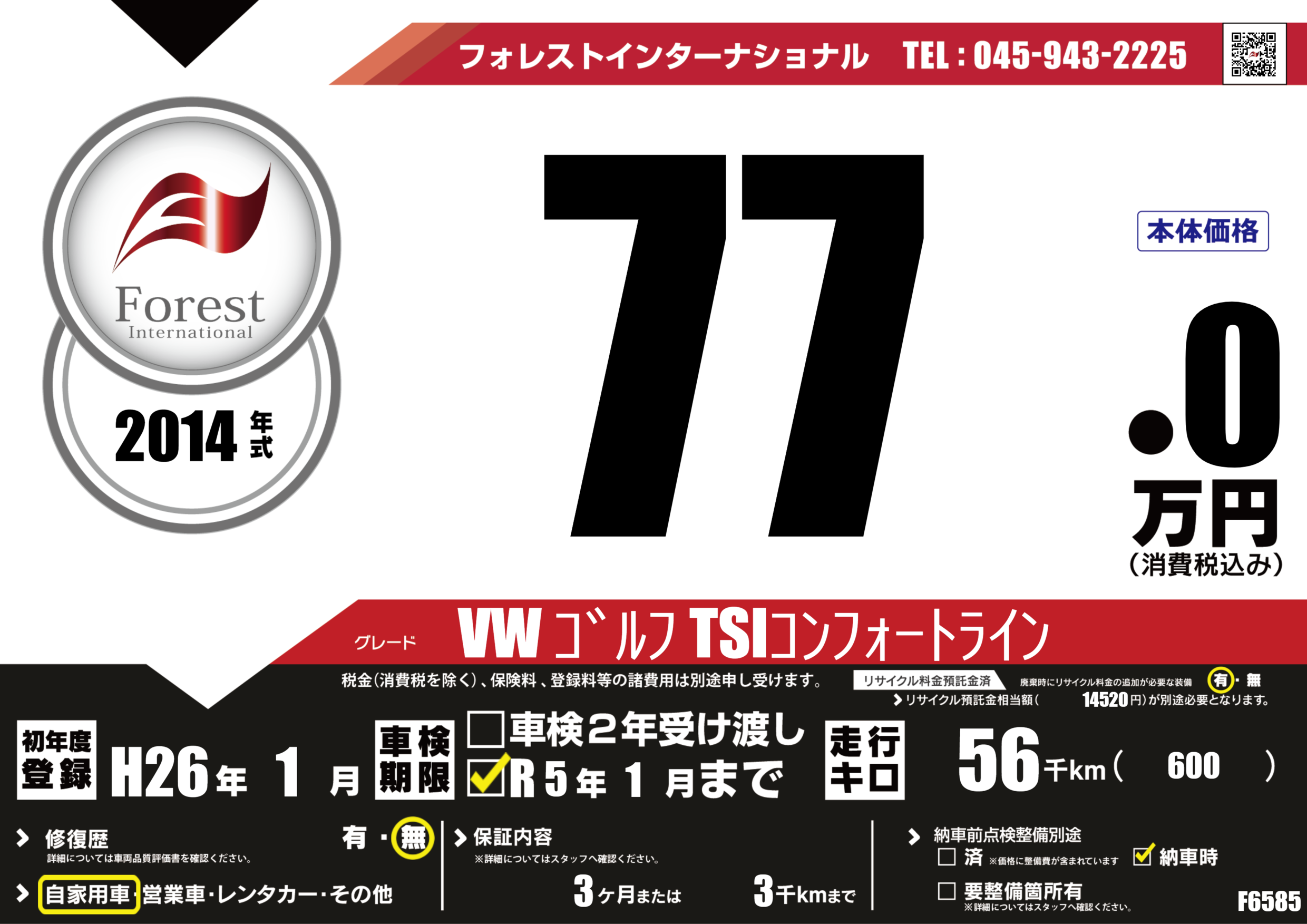 | 走行キロ | 5.6万km | ||