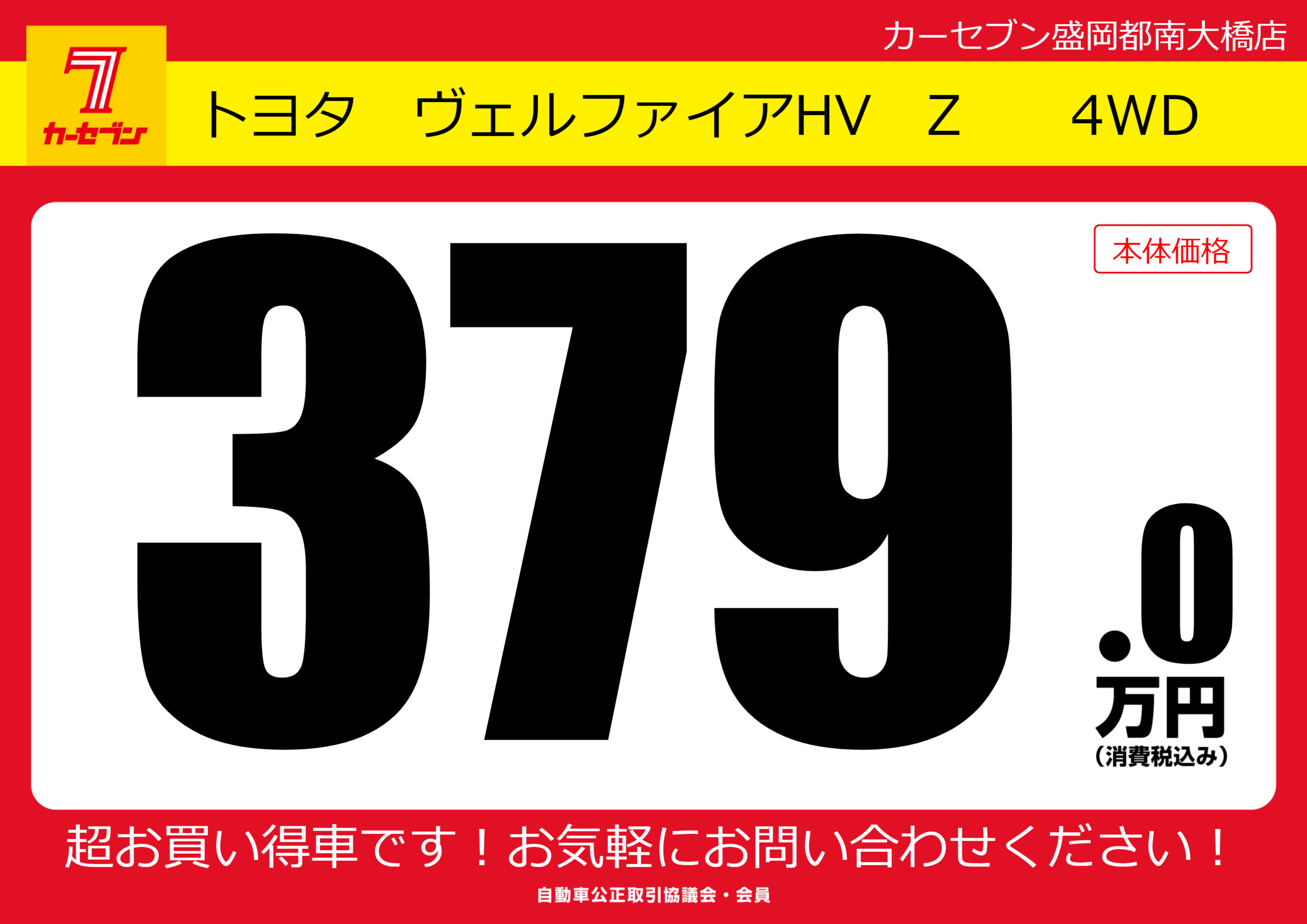 | 車名 | トヨタ ヴェルファイアHV Z 4WD | グレード ミッション 排気量 |