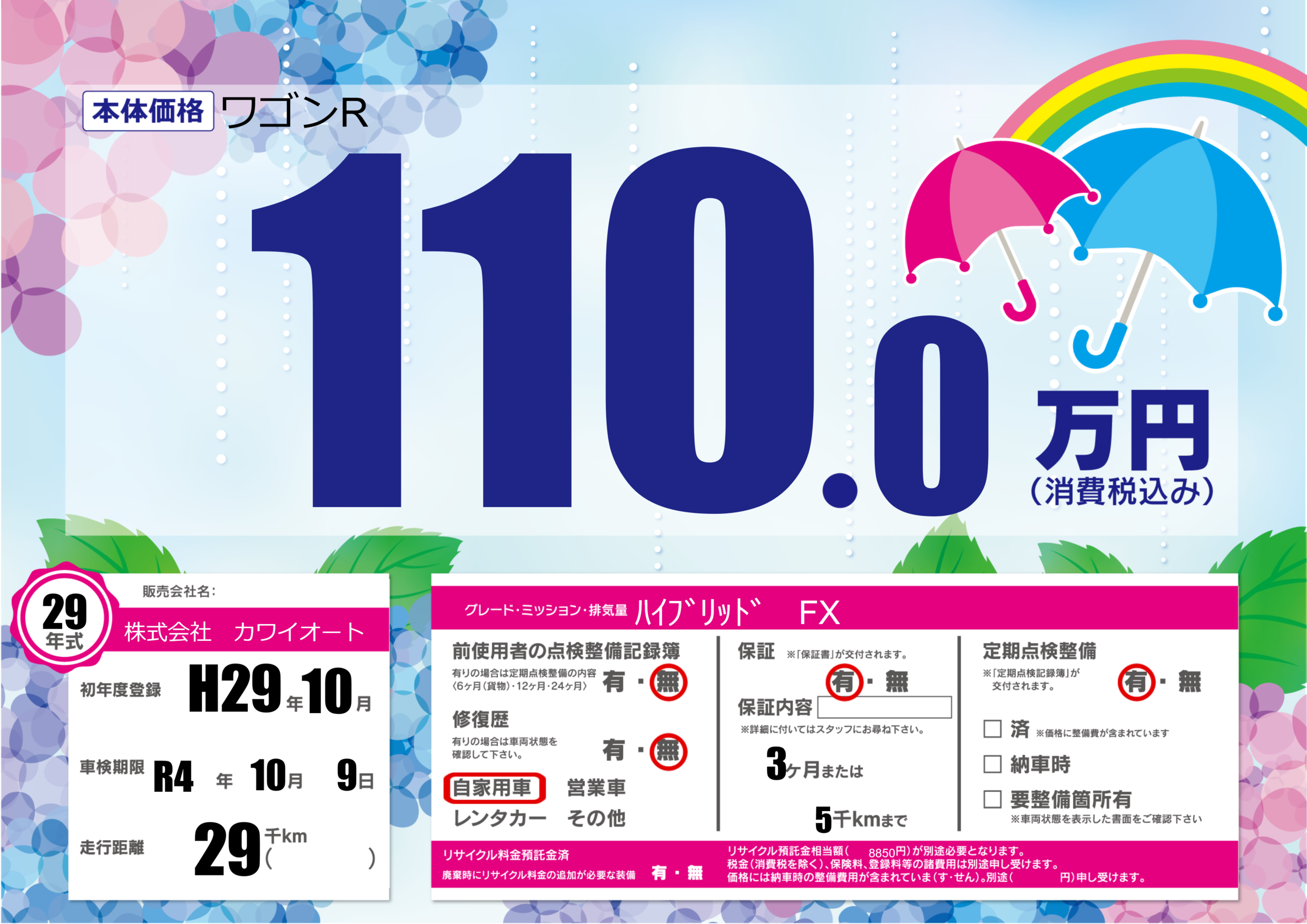 | 車名 | ワゴンR | グレード ミッション 排気量 |