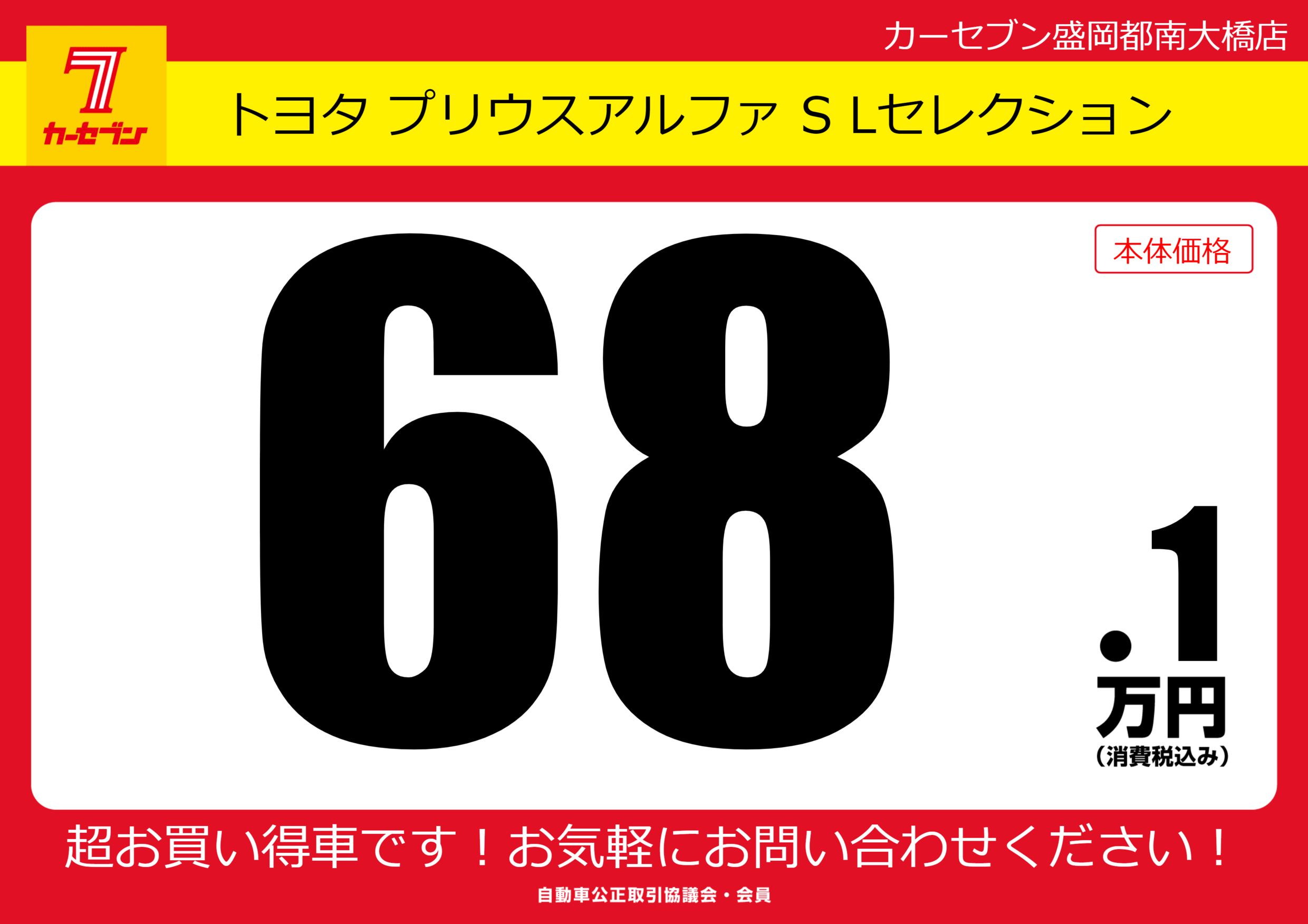 | 車名 | トヨタ プリウスアルファ S Lセレクション | グレード ミッション 排気量 |
