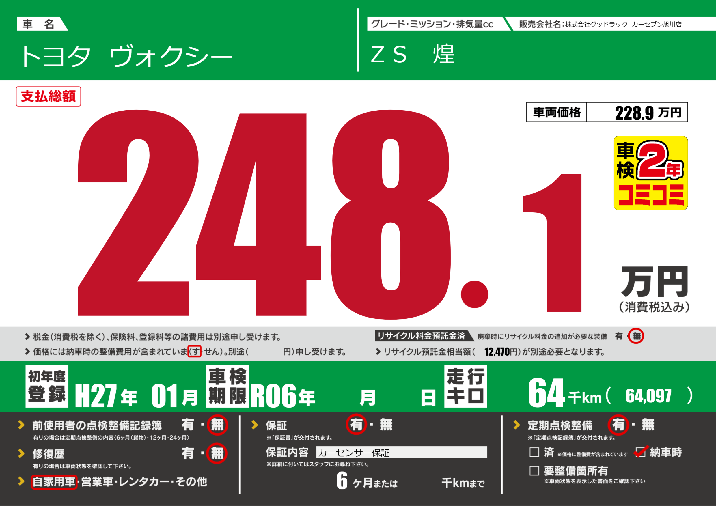 | 走行キロ | 6.4万km | 初年度登録 | H27年01月 |