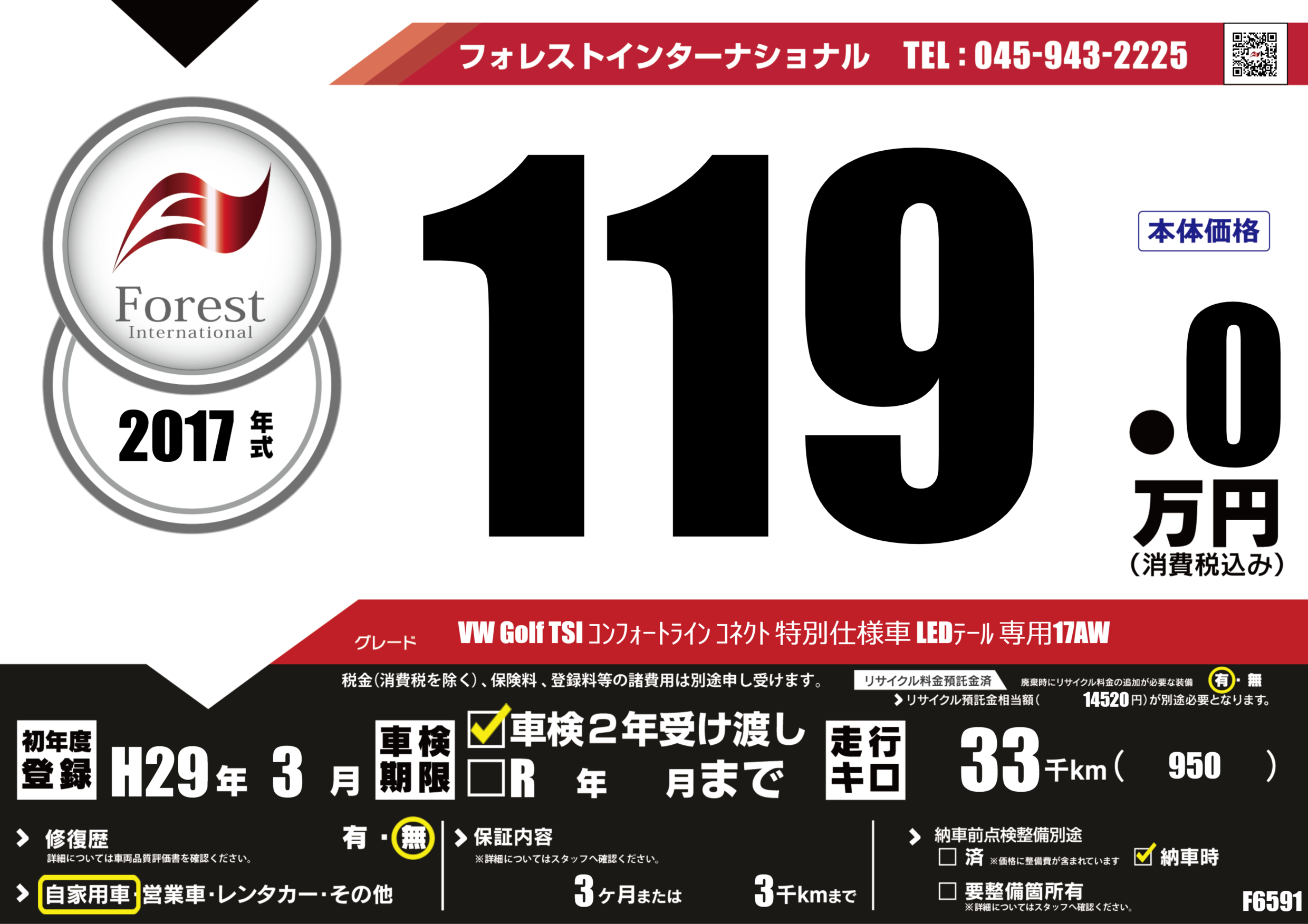 VW Golf TSI コンフォートライン コネクト 特別仕様車 LEDテール 専用17AW |