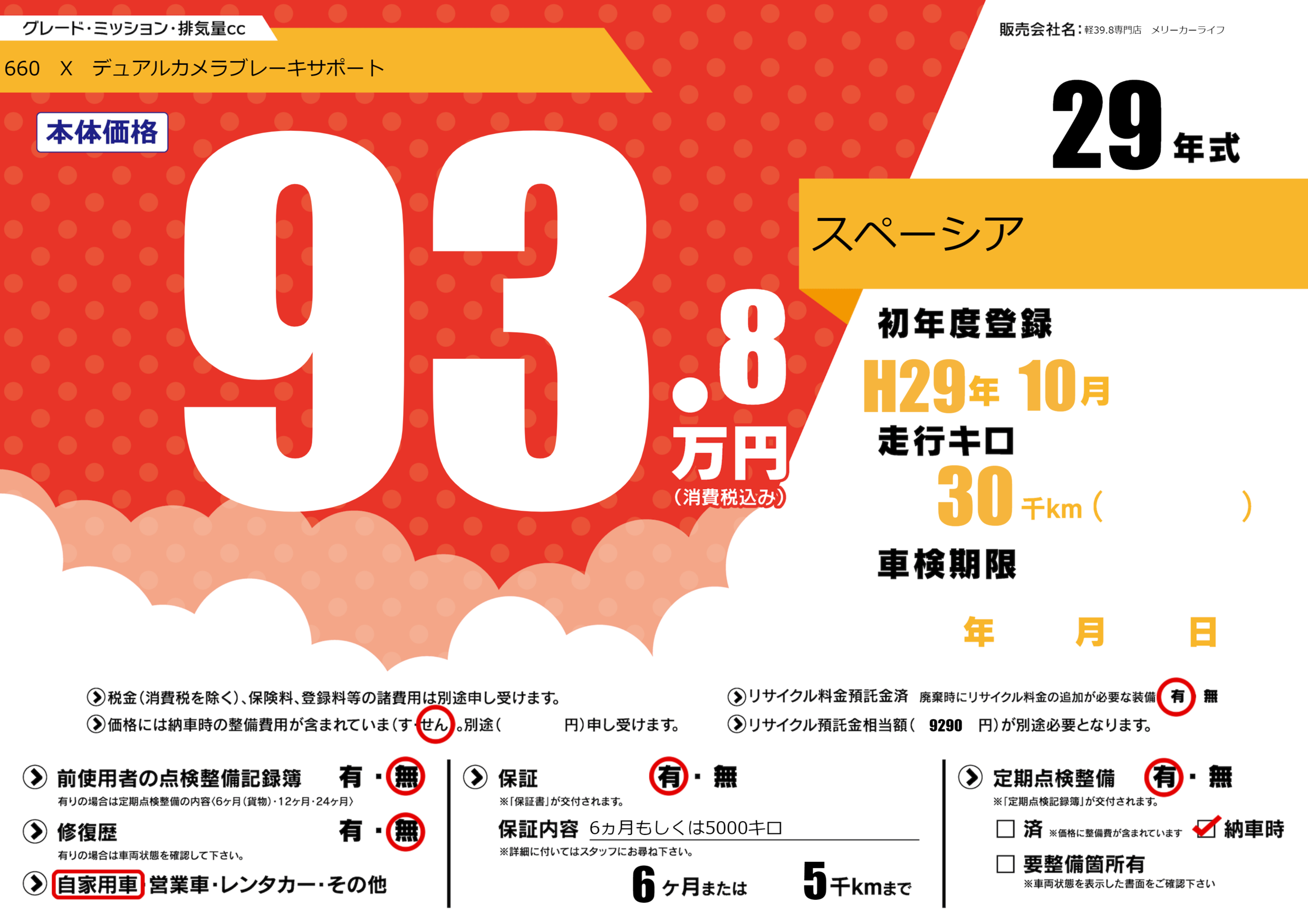 | 走行キロ | 3万km | 初年度登録 | H29年10月 |