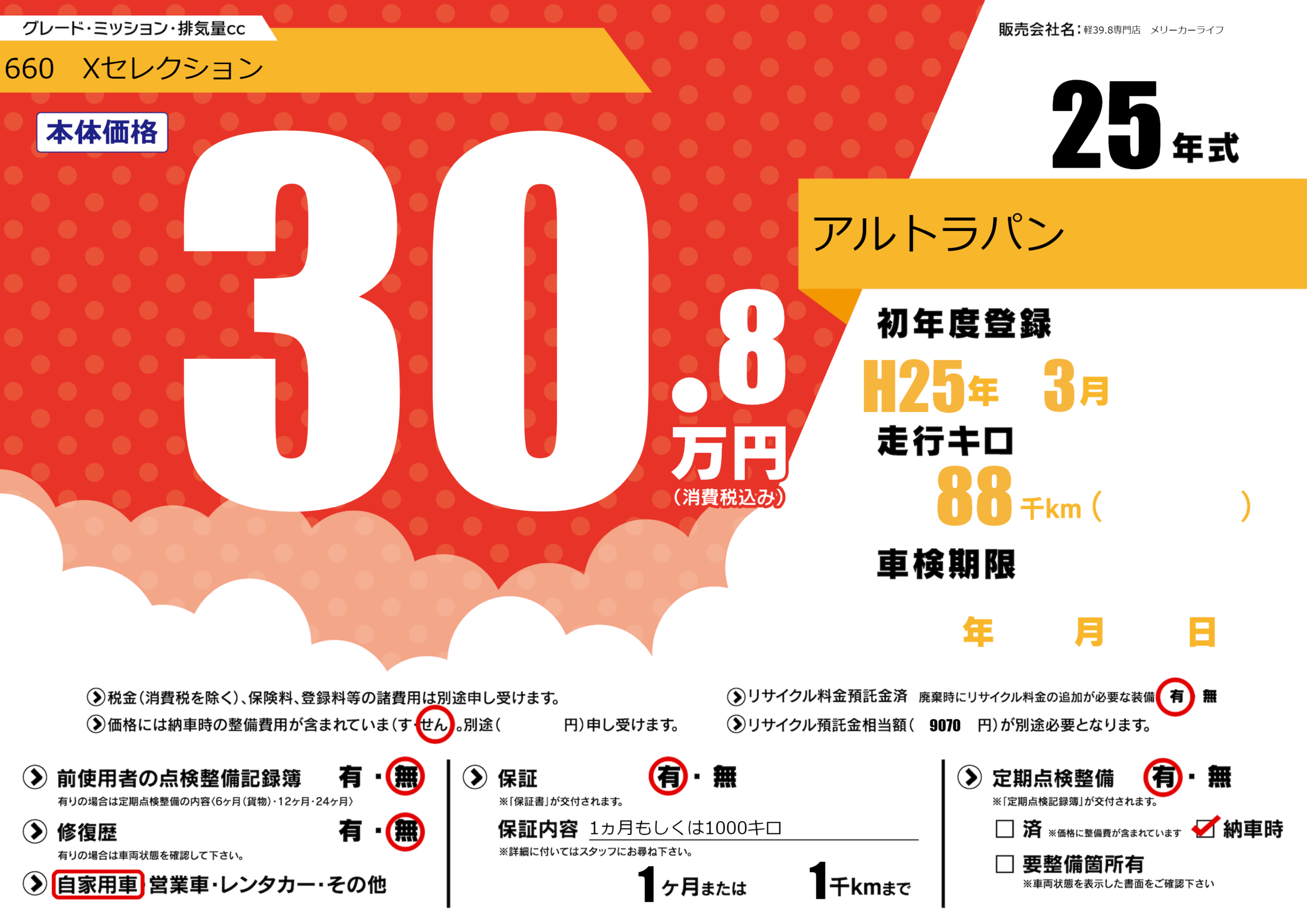 | 定期点検整備 | 定期点検整備あり 納車時あり | ||