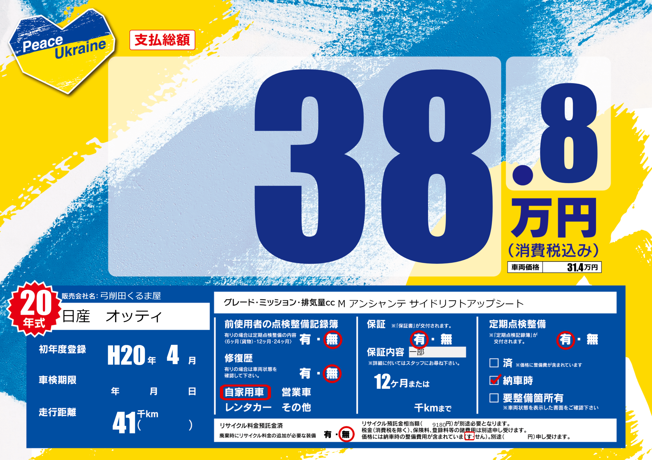 | 走行キロ | 4.1万km | 初年度登録 | H20年4月 |
