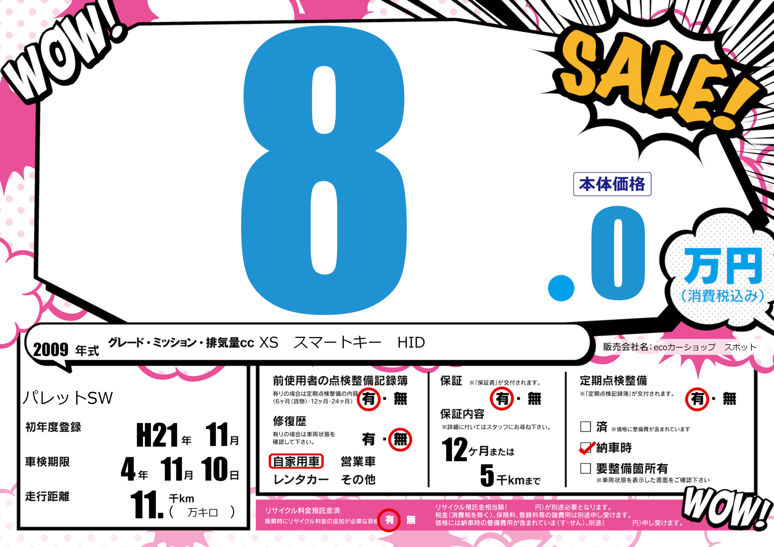 | 車名 | パレットSW | グレード ミッション 排気量 |