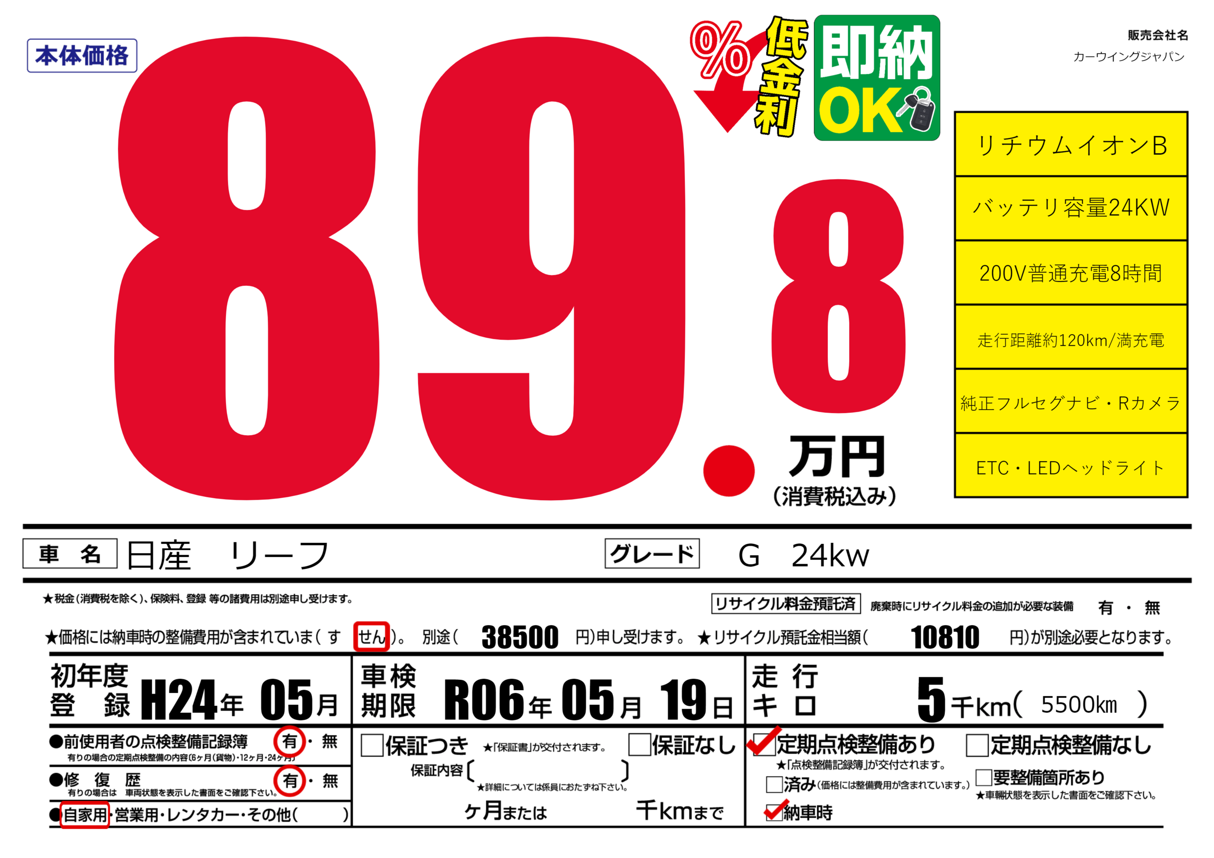 車検制限 | R06年05月19月 |