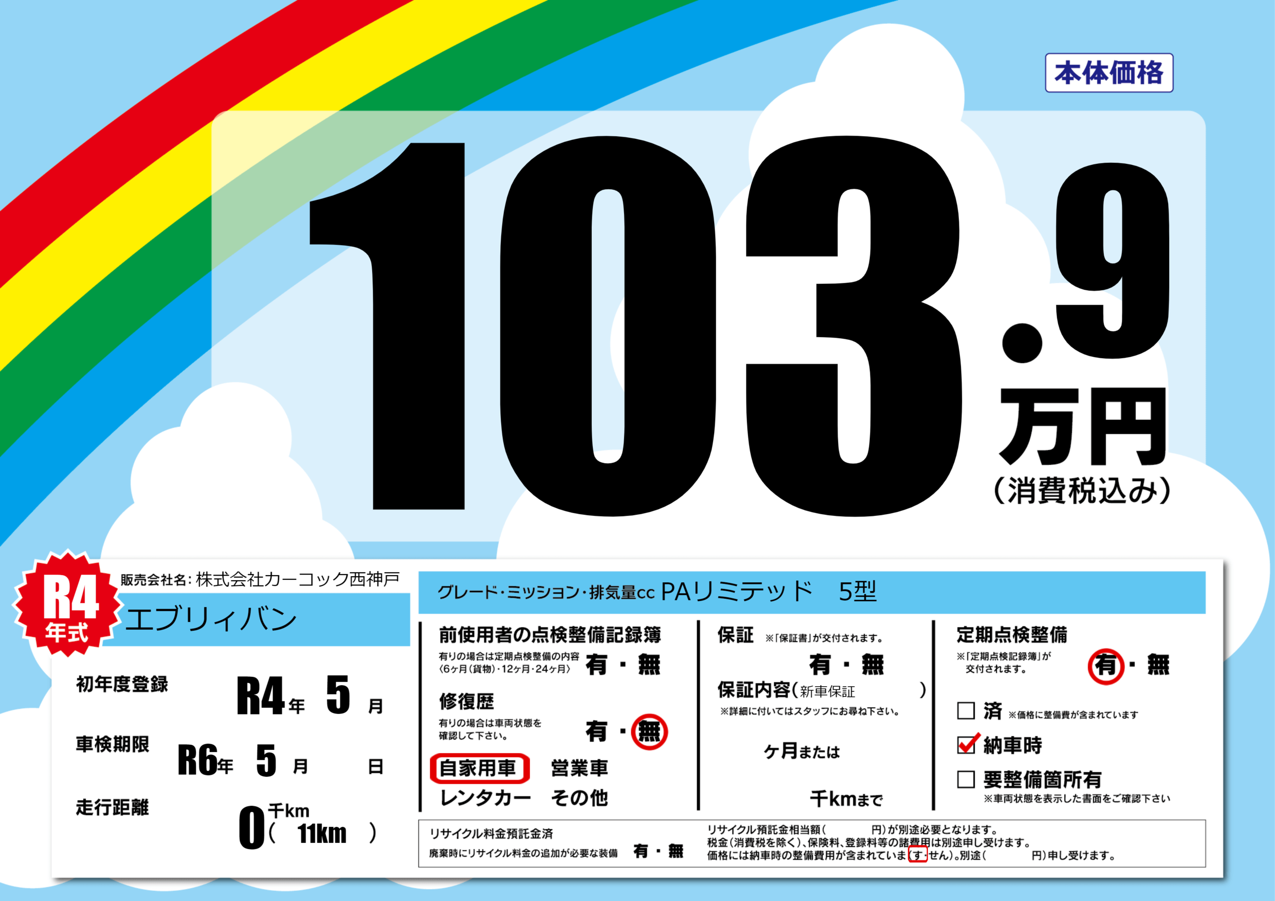 | 車名 | エブリィバン | グレード ミッション 排気量 |