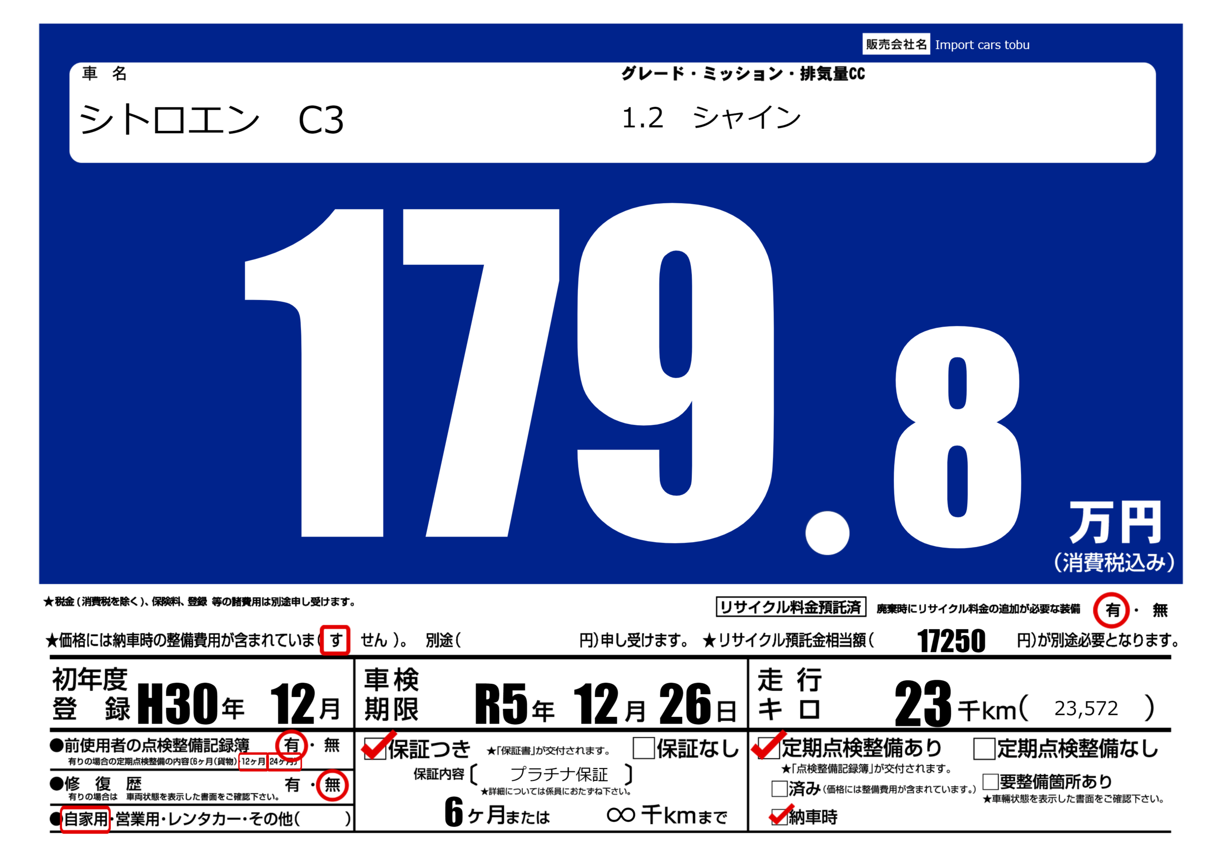 保証付き 保証内容( プラチナ保証) 6ヶ月または(∞)千kmまで |