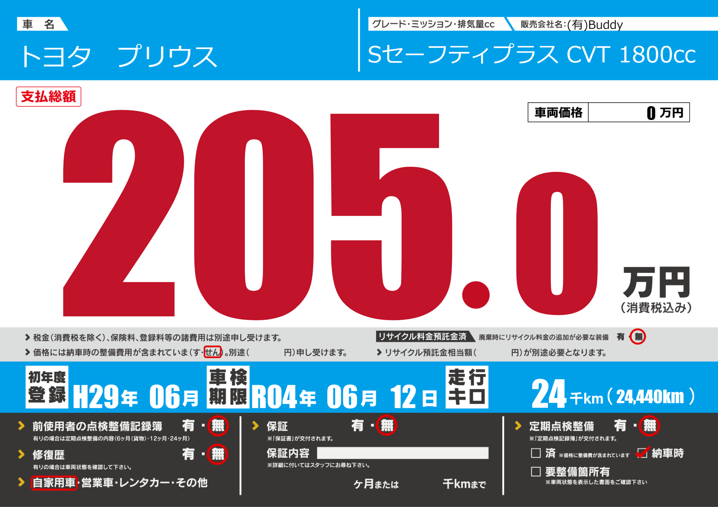 | 車名 | トヨタ プリウス | グレード ミッション 排気量 |