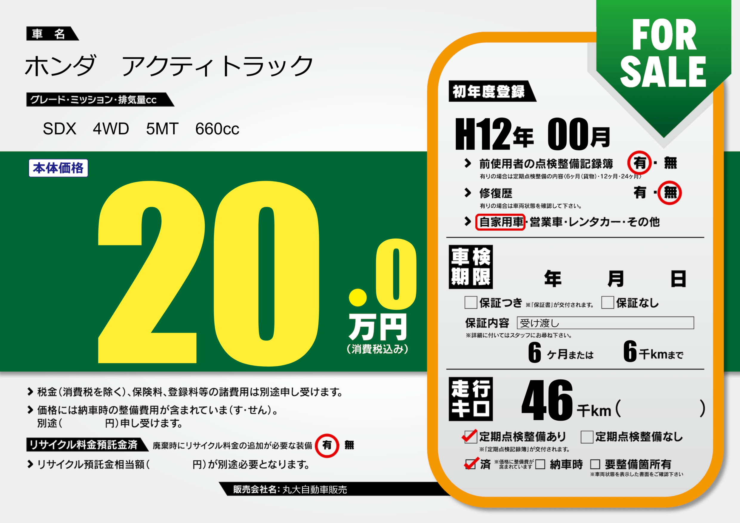 | 定期点検整備 | 定期点検整備あり 定期点検整備済み | ||