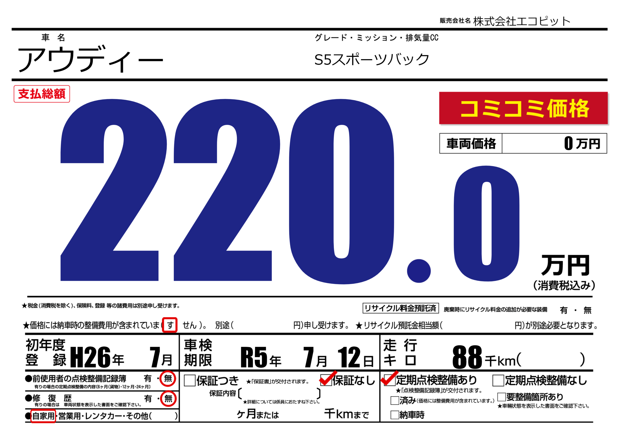 | 定期点検整備 | 定期点検整備あり | ||