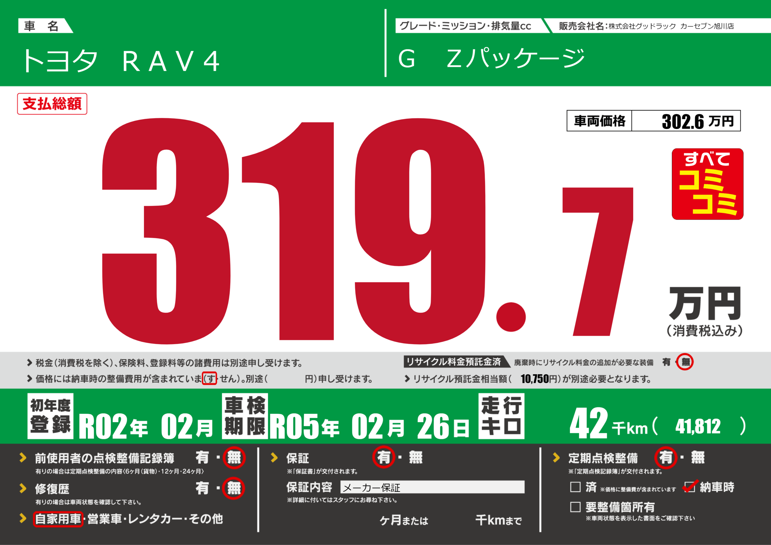 | 車検制限 | R05年 02月 26日 | ||