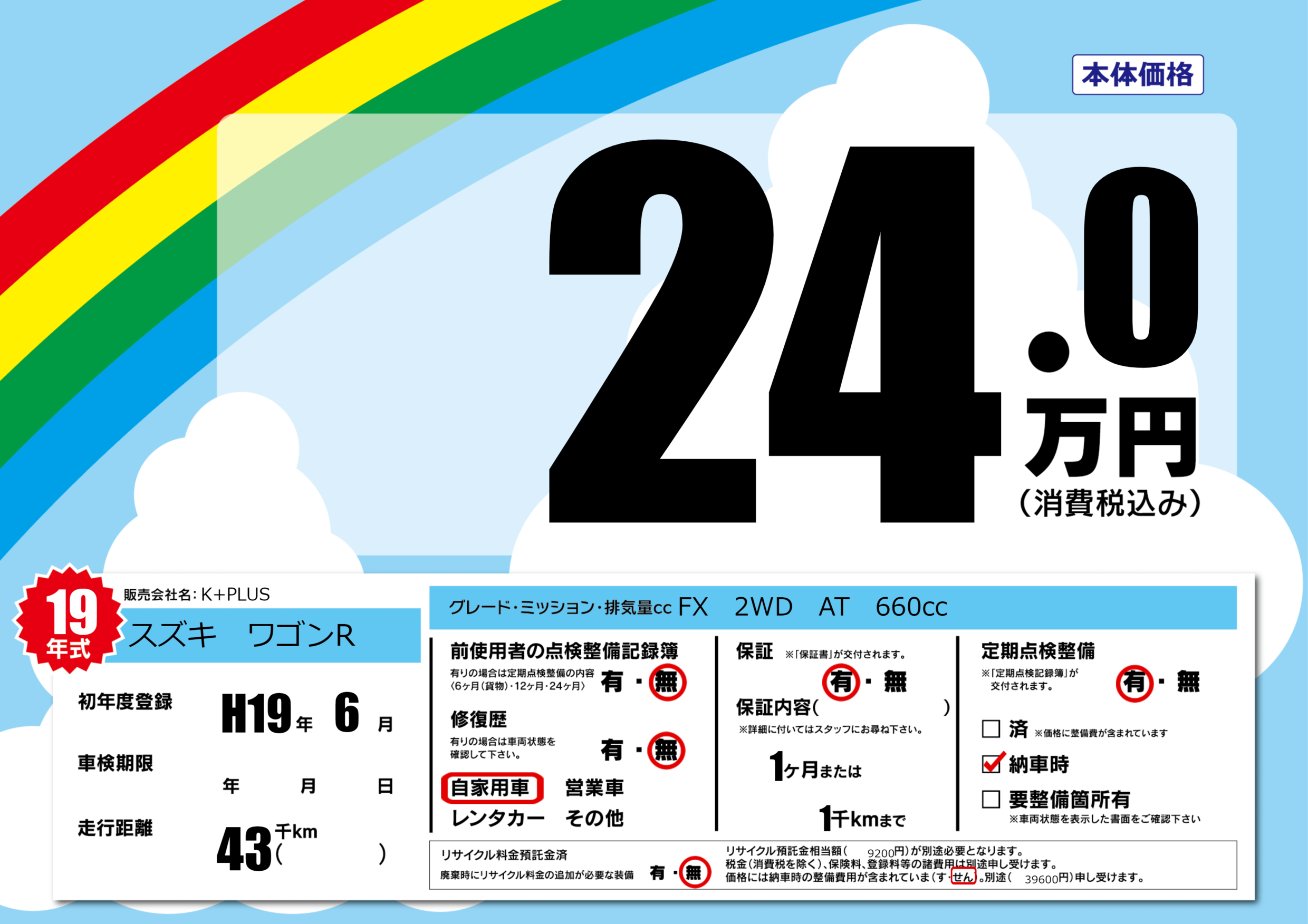 | 車名 | スズキ ワゴンR | グレード ミッション 排気量 |