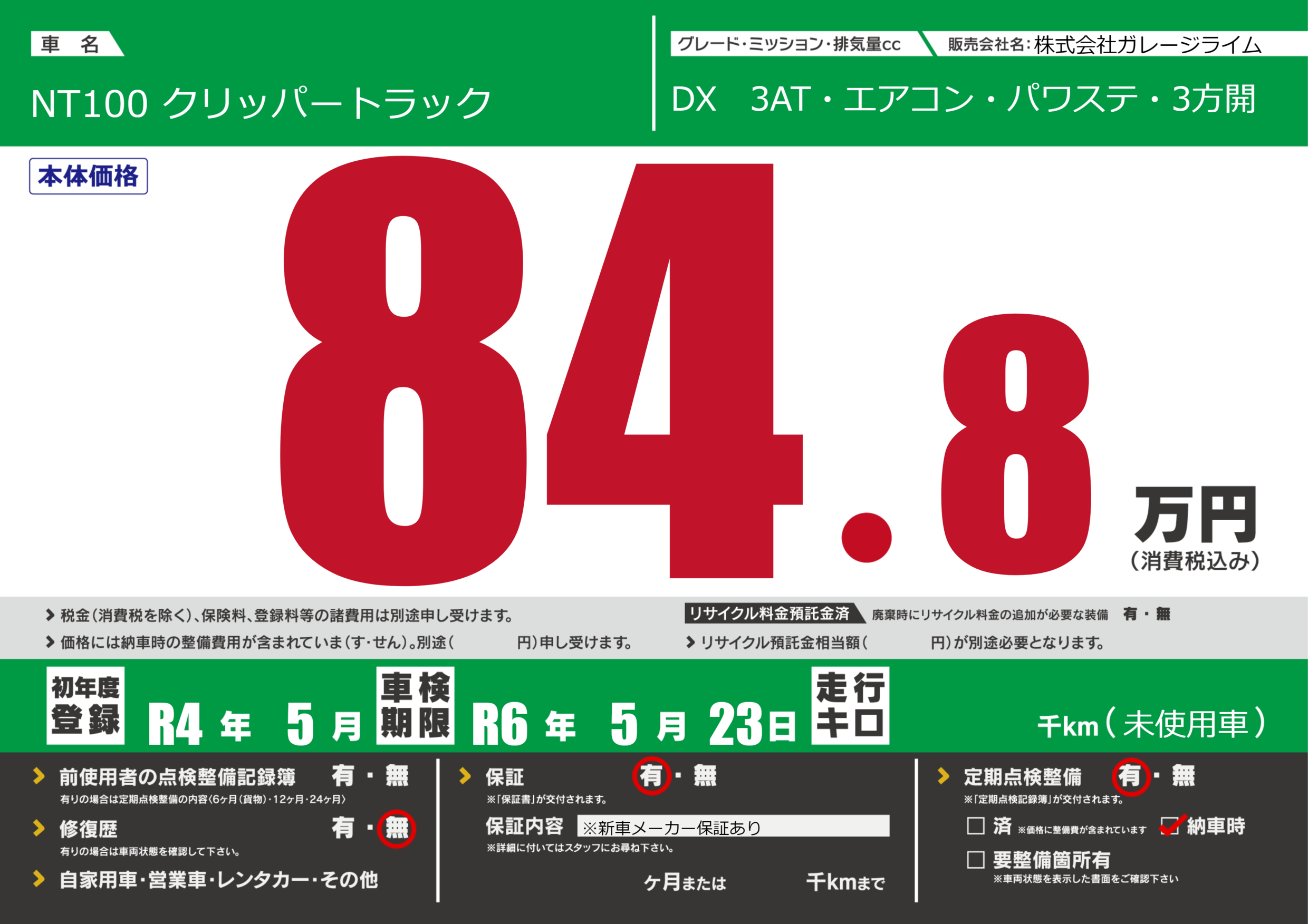 なし | 車検制限 | R6年5月23月 |