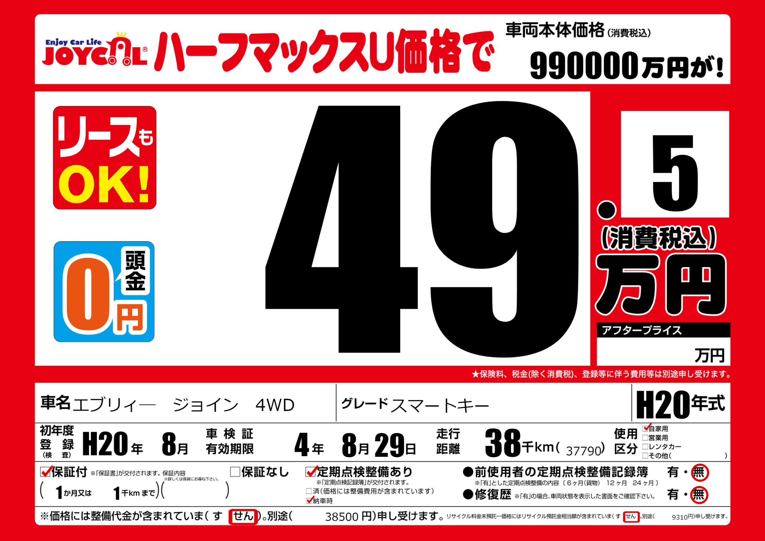 | 車名 | エブリィ― ジョイン 4WD | グレード ミッション 排気量 |